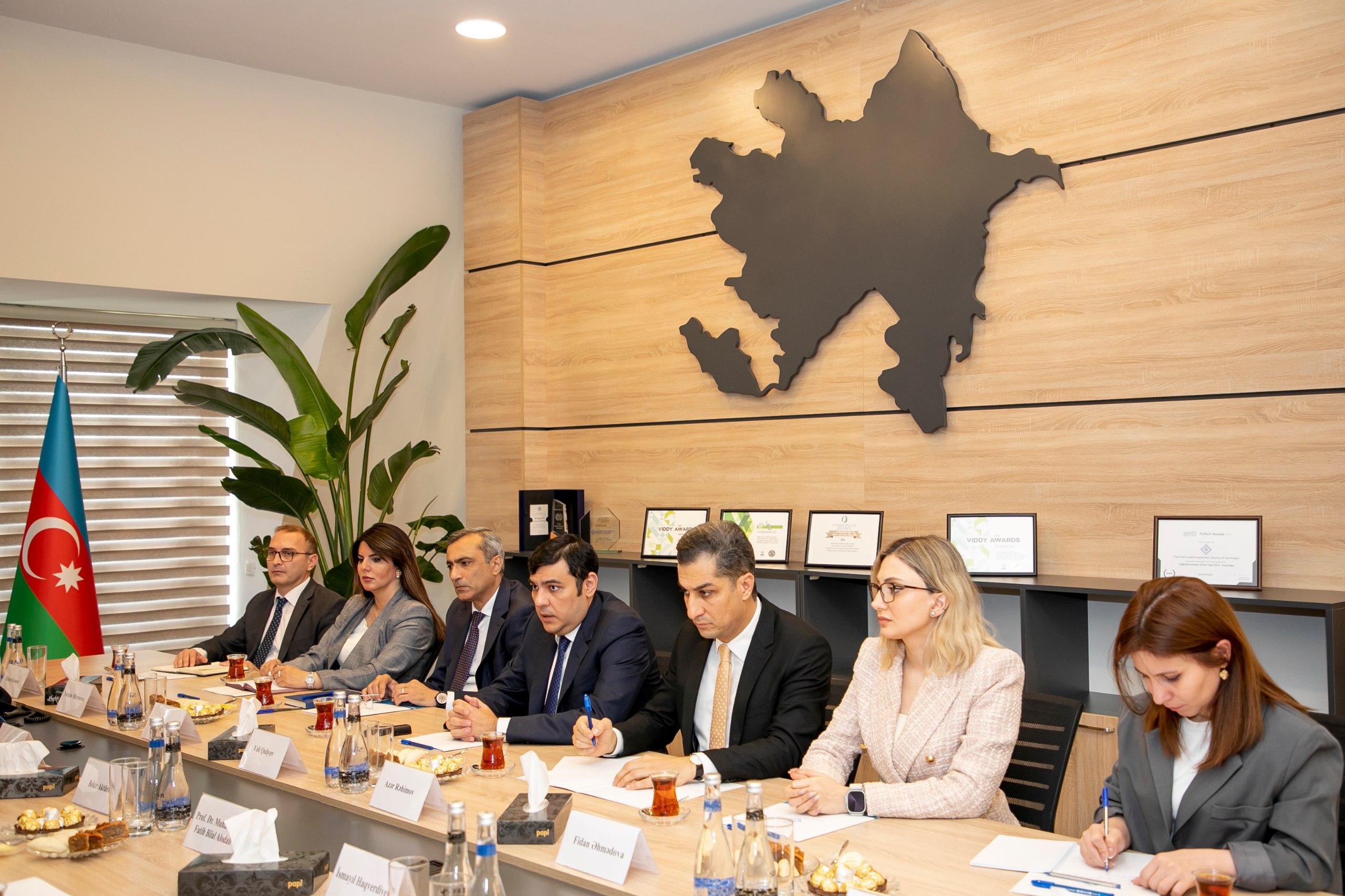 Azərbaycan Respublikasının Əmək və Əhalinin Sosial Müdafiəsi Nazirliyi yanında Dövlət Əmək Müfəttişliyi Xidmətində Türkiyə Respublikasının Əmək və Sosial Müdafiə Nazirliyinin Əmək Müfəttişliyi Qurumunun rəhbəri Bekir Aktürkün başçılıq etdiyi nümayəndə heyəti ilə görüş keçirilib.