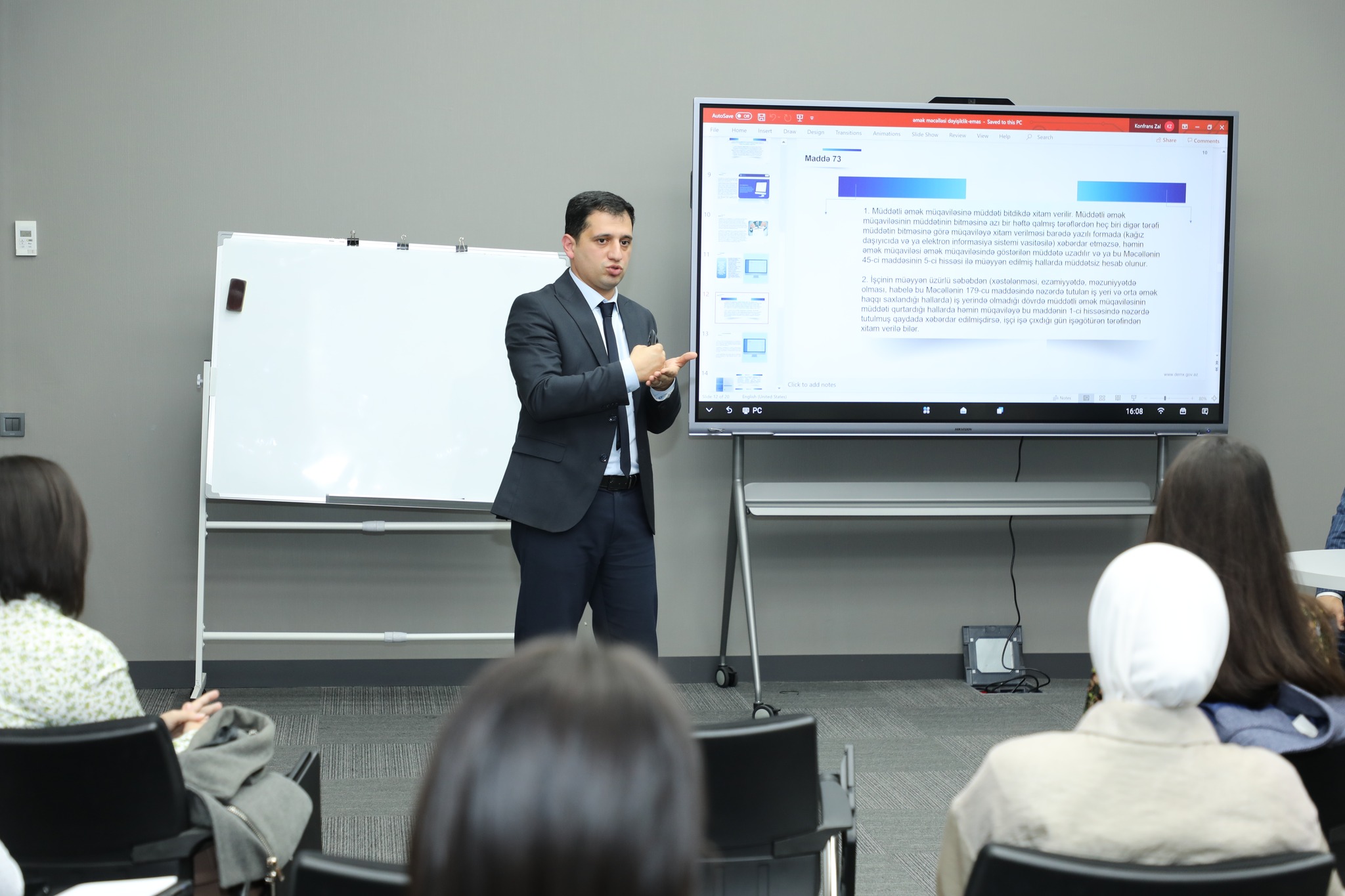 Əmək müqavilələrinin elektron sənəd formasına keçidi ilə əlaqədar Əmək və Məşğulluq Alt Sistemindən (ƏMAS) istifadə prosedurlarına dair işəgötürənlər və onların nümayəndələri üçün keçirilən təlimlər davam edir.