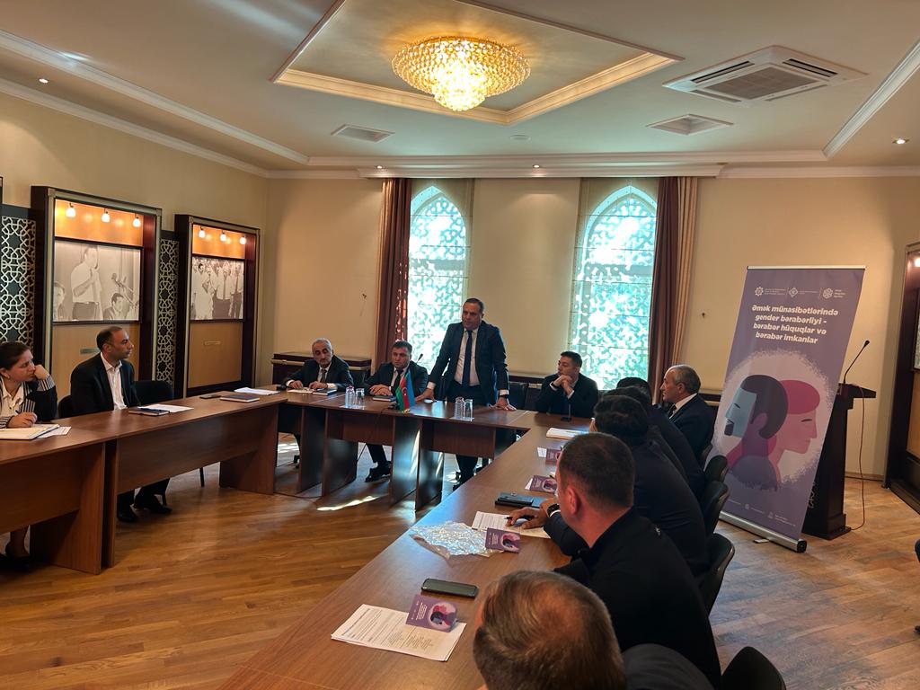 Əmək və Əhalinin Sosial Müdafiəsi Nazirliyinin Əmək siyasəti şöbəsi, Nazirlik yanında Dövlət Əmək Müfəttişliyi Xidməti və Dövlət Məşğulluq Agentliyinin təşkilatçılığı ilə təşkil olunan tədbirlər “Əmək münasibətlərində gender bərabərliyi-bərabər hüquqlar və bərabər imkanlar” mövzusunda olub.