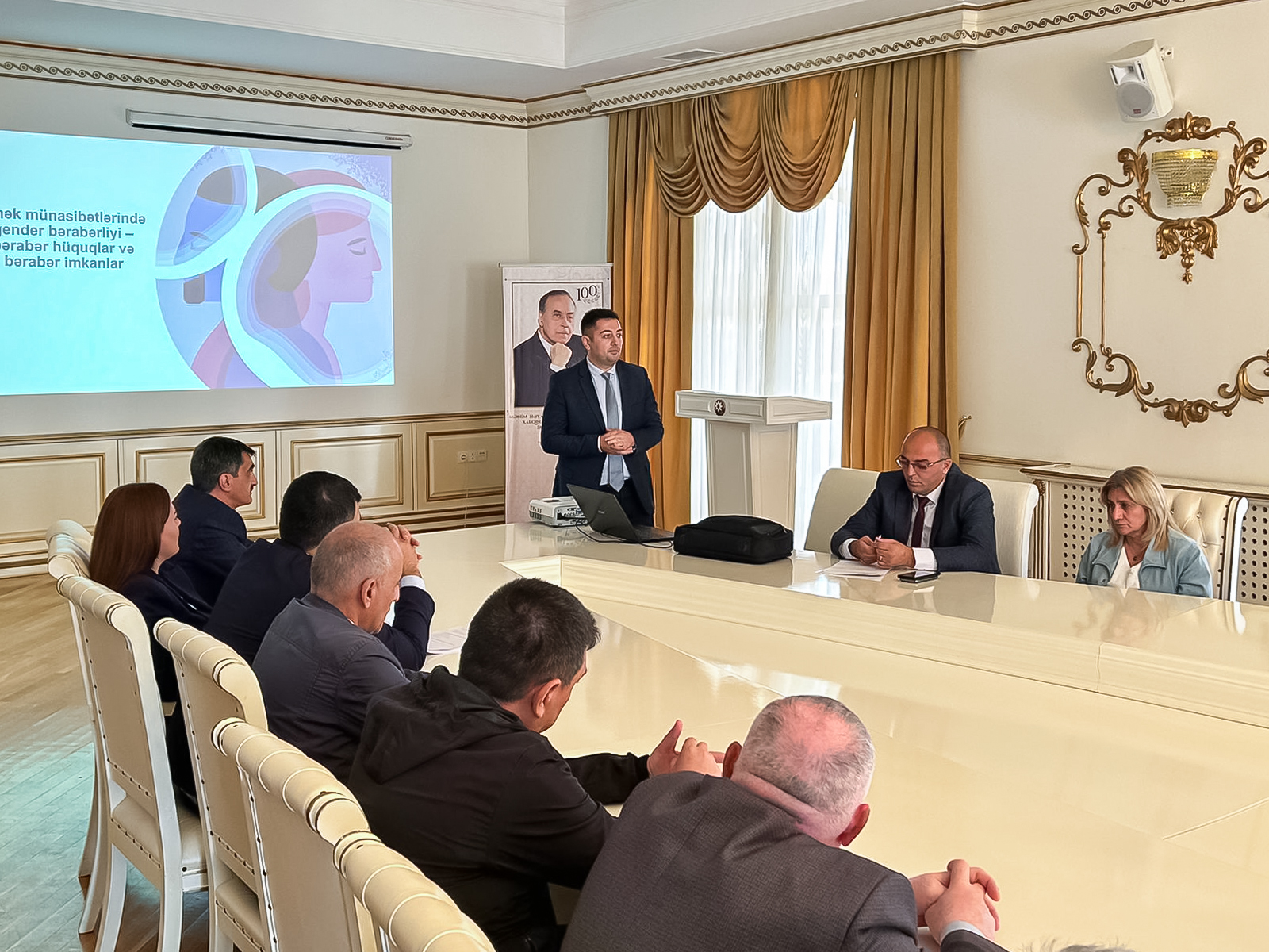 Əmək və Əhalinin Sosial Müdafiəsi Nazirliyinin Əmək siyasəti şöbəsi, Nazirlik yanında Dövlət Əmək Müfəttişliyi Xidməti və Dövlət Məşğulluq Agentliyinin təşkilatçılığı ilə təşkil olunan tədbir “Əmək münasibətlərində gender bərabərliyi-bərabər hüquqlar və bərabər imkanlar” mövzusunda olub.
