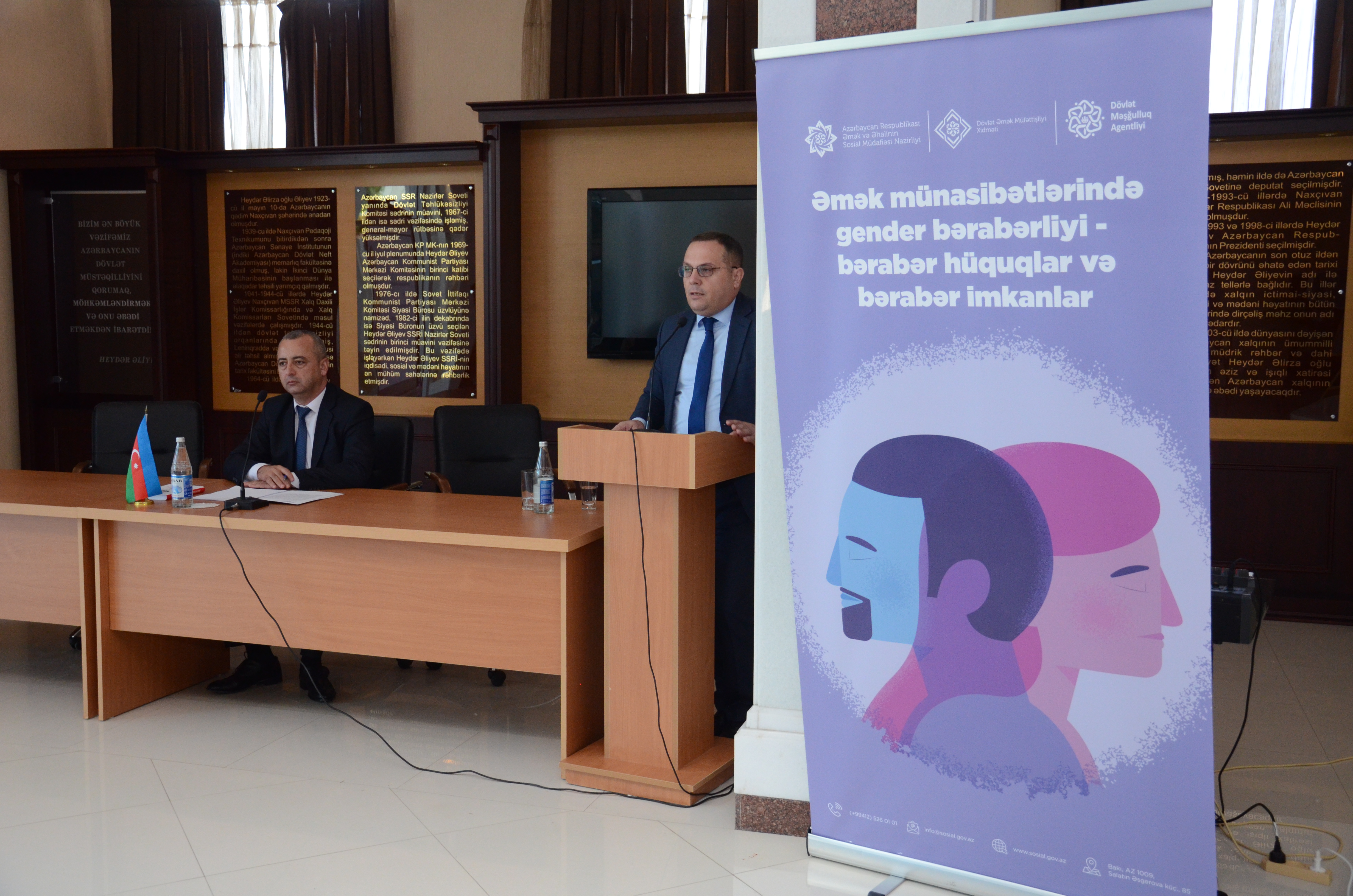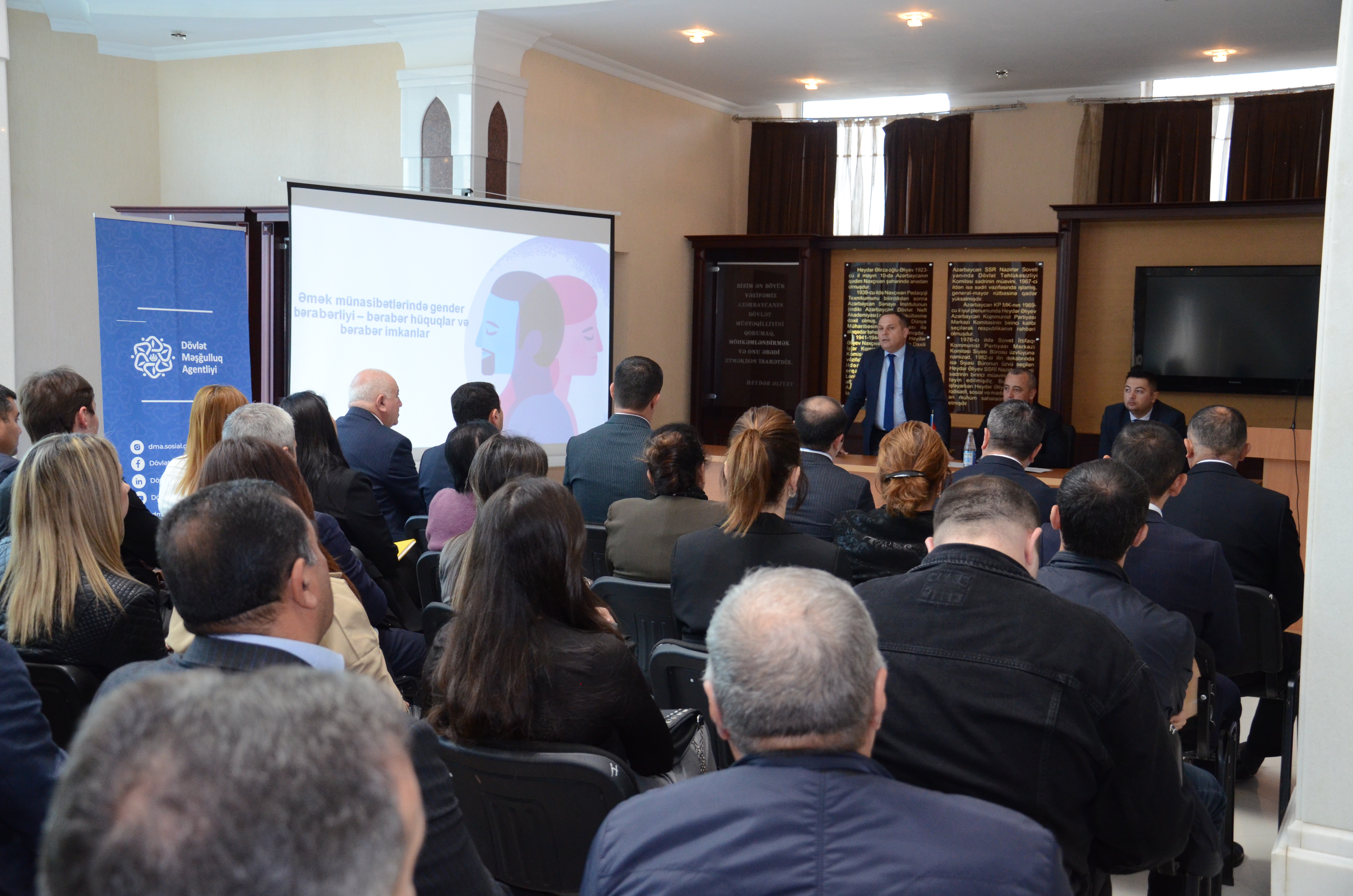 Əmək və Əhalinin Sosial Müdafiəsi Nazirliyinin Əmək siyasəti şöbəsi, Nazirlik yanında Dövlət Əmək Müfəttişliyi Xidməti və Dövlət Məşğulluq Agentliyinin təşkilatçılığı ilə təşkil olunan tədbirlər “Əmək münasibətlərində gender bərabərliyi-bərabər hüquqlar və bərabər imkanlar” mövzusunda olub.