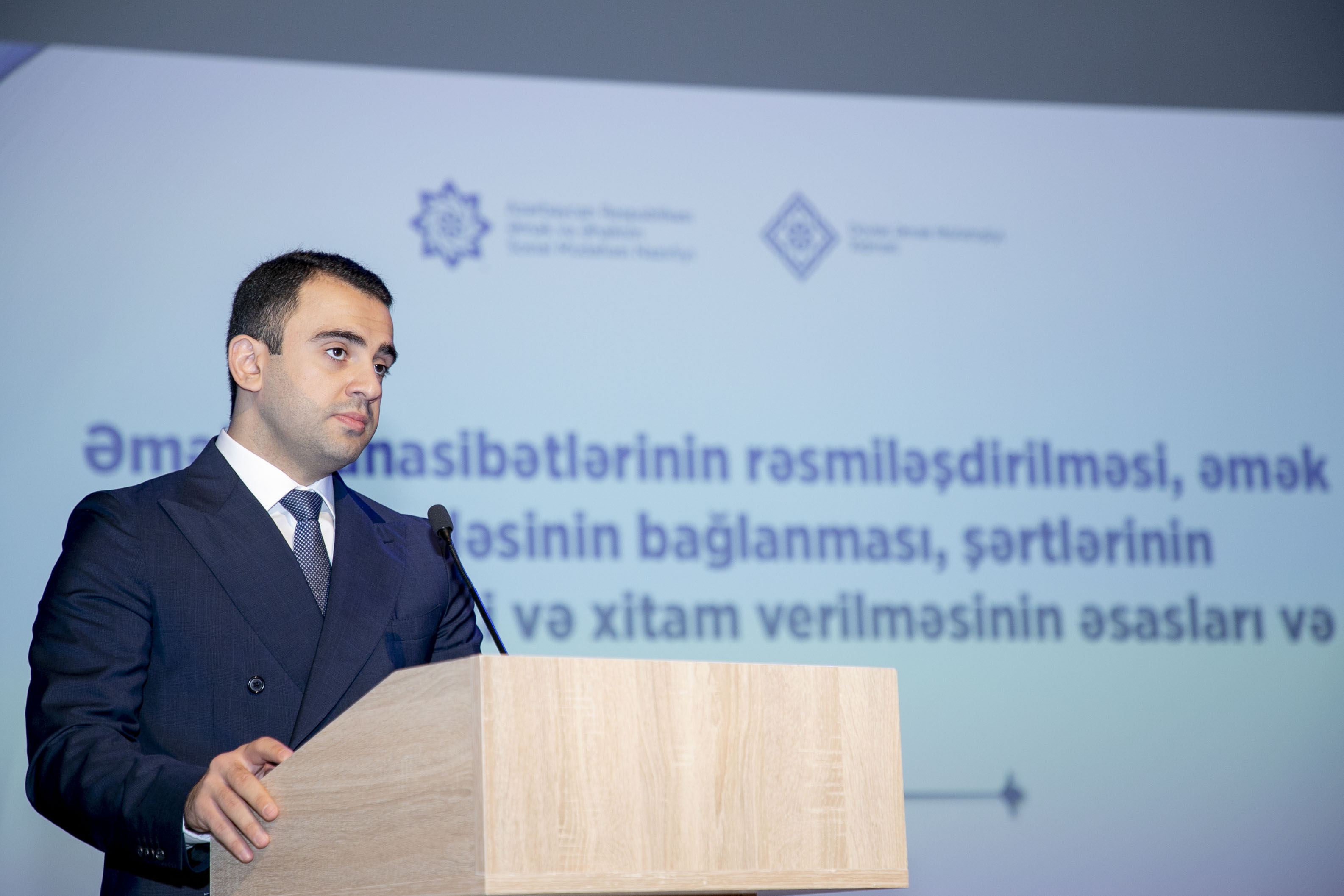Açılış nitqi ilə çıxış edən Dövlət Əmək Müfəttişliyi Xidmətinin Bakı Şəhər İdarəsinin rəisi Rüfət Əliyev ölkədə son 5 il ərzində icra olunan sosial islahat paketləri, eləcə də işçilərin əmək hüquqlarının qorunması sahəsində həyata keçirilən tədbirlər barədə məlumat verib.