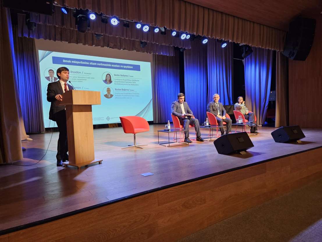 Mövzu ətrafında Baş Prokurorluğun Cinayət Təqibindən Kənar İcraatlar İdarəsi, Azərbaycan Həmkarlar İttifaqları Konfederasiyası, Azərbaycan Respublikası Sahibkarlar (İşəgötürənlər) Təşkilatları Milli Konfederasiyası və Xidmətin Bakı Şəhər İdarəsinin nümayəndələri tərəfindən qanunvericiliyinin tələbləri barədə çıxışlar edilib.