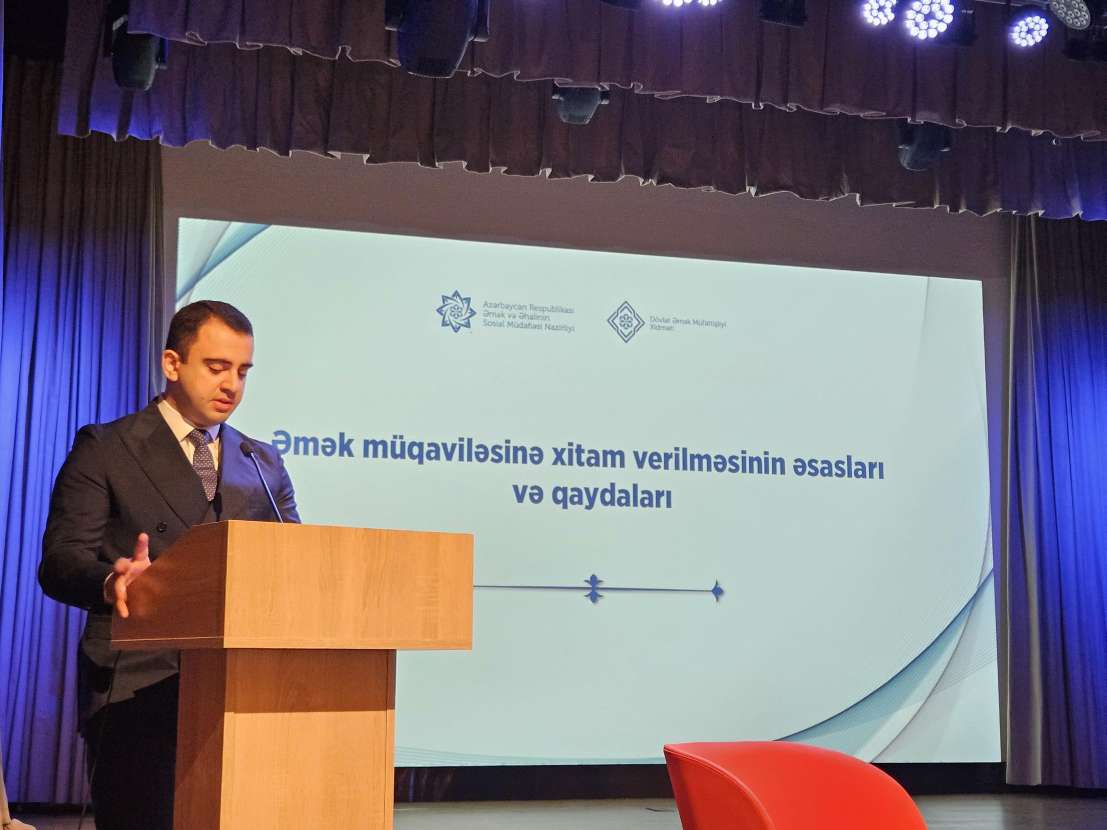 Əmək və Əhalinin Sosial Müdafiəsi Nazirliyi yanında Dövlət Əmək Müfəttişliyi Xidməti “Əmək müqaviləsinə xitam verilməsinin əsasları və qaydaları” mövzusunda marifləndirici tədbir keçirib.