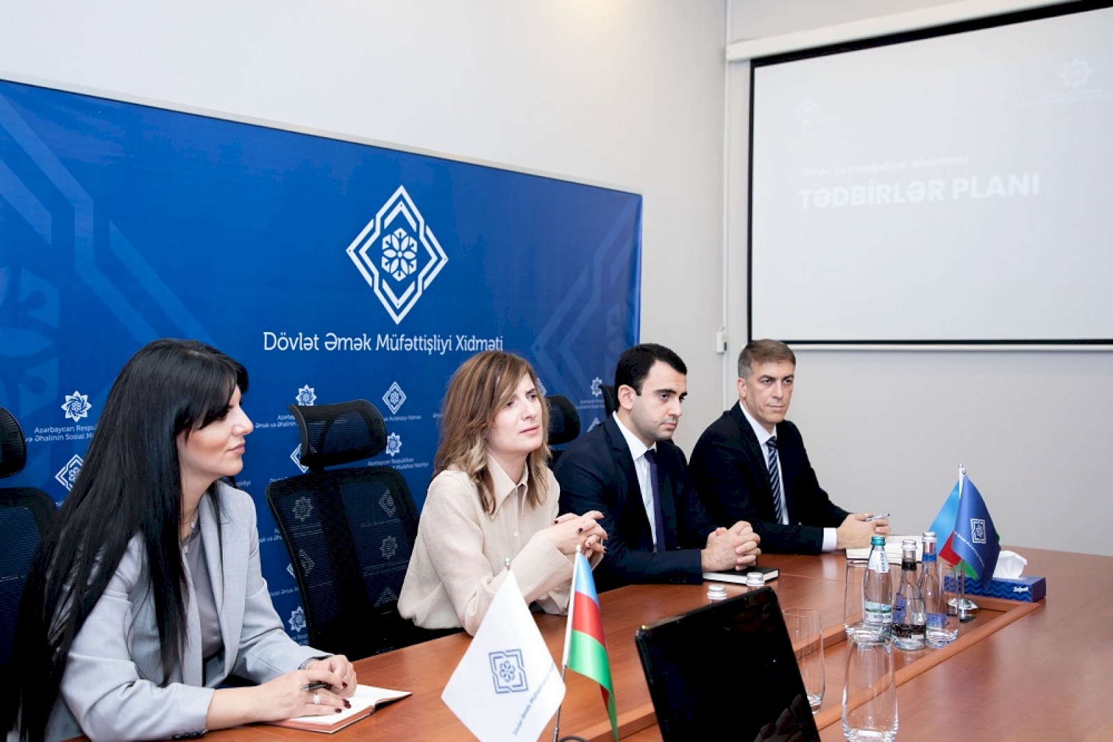 Görüşdə Dövlət Əmək Müfəttişliyi Xidmətinin rəisi Vəli Quliyev əmək qanunvericiliyinin tətbiqinə nəzarət mexanizminin innovativ həllərin tətbiqi əsasında təkmilləşdirilməsi istiqamətində son illər aparılan islahatlar barədə məlumat verib.