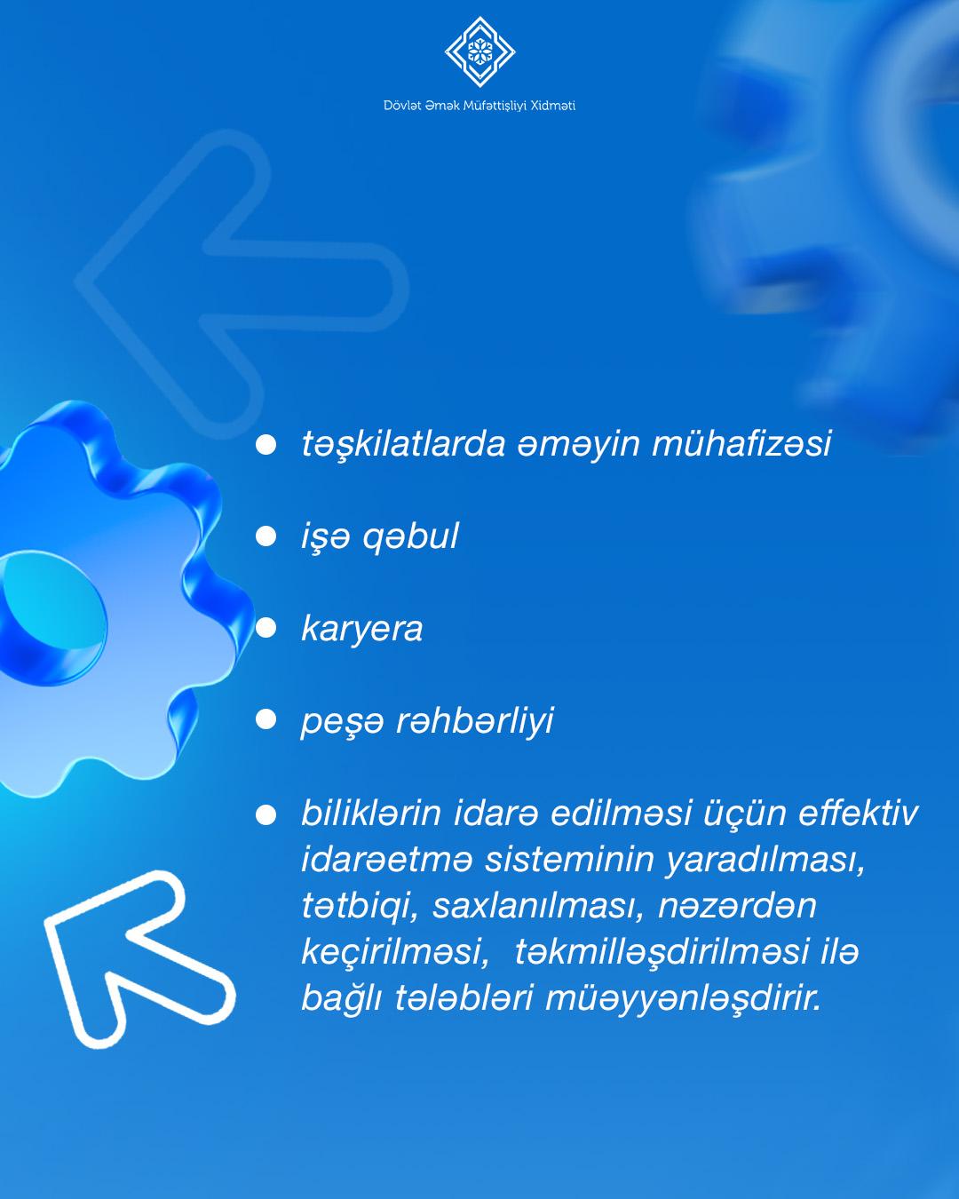 Təsdiq edilmiş 12 yeni standart təşkilatlarda əməyin mühafizəsi, işə qəbul, karyera, peşə rəhbərliyi, biliklərin idarə edilməsi üçün effektiv idarəetmə sisteminin yaradılması, tətbiqi, saxlanılması, nəzərdən keçirilməsi və təkmilləşdirilməsi ilə bağlı tələbləri müəyyənləşdirir və təlimatlar verir.