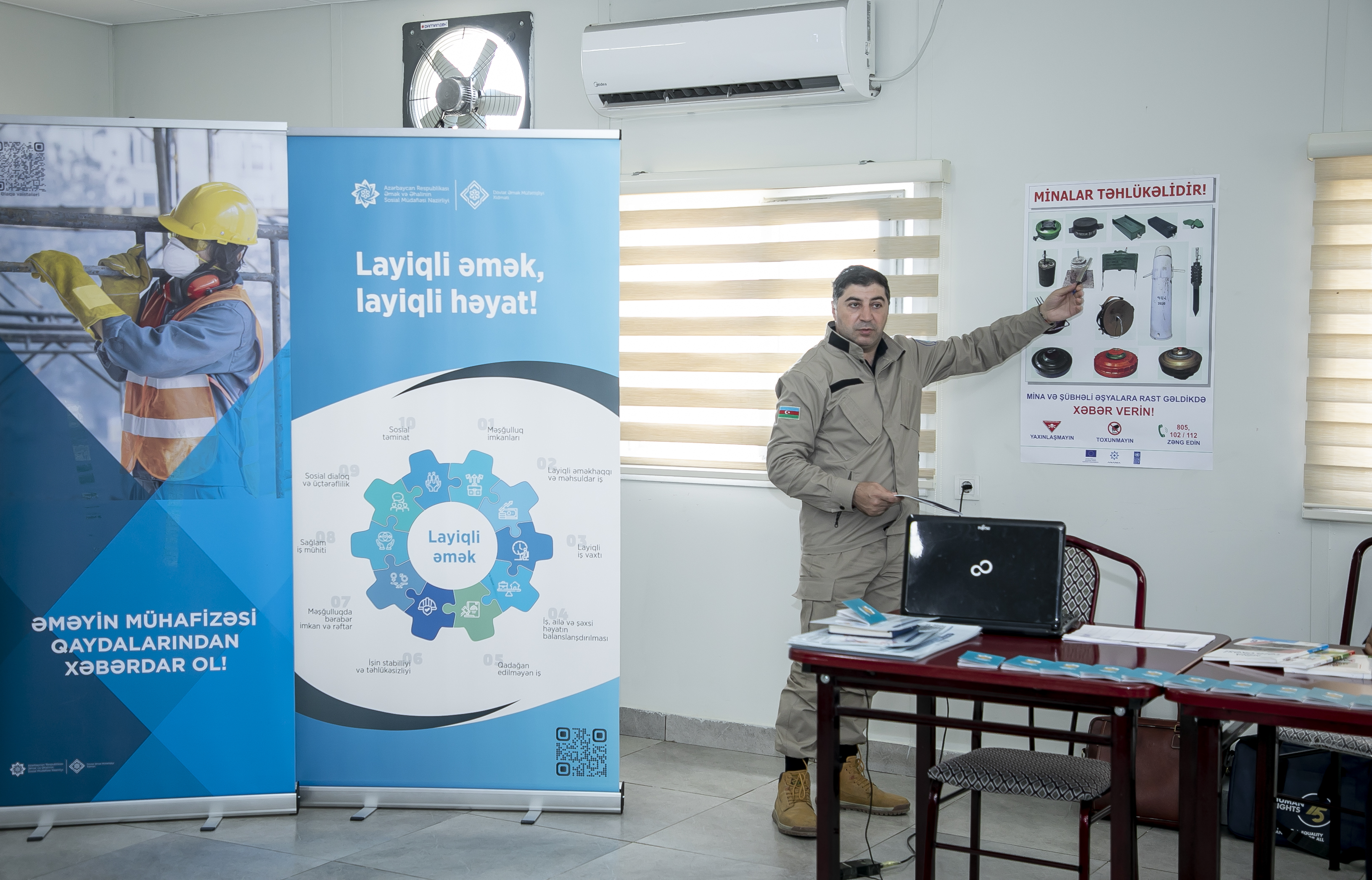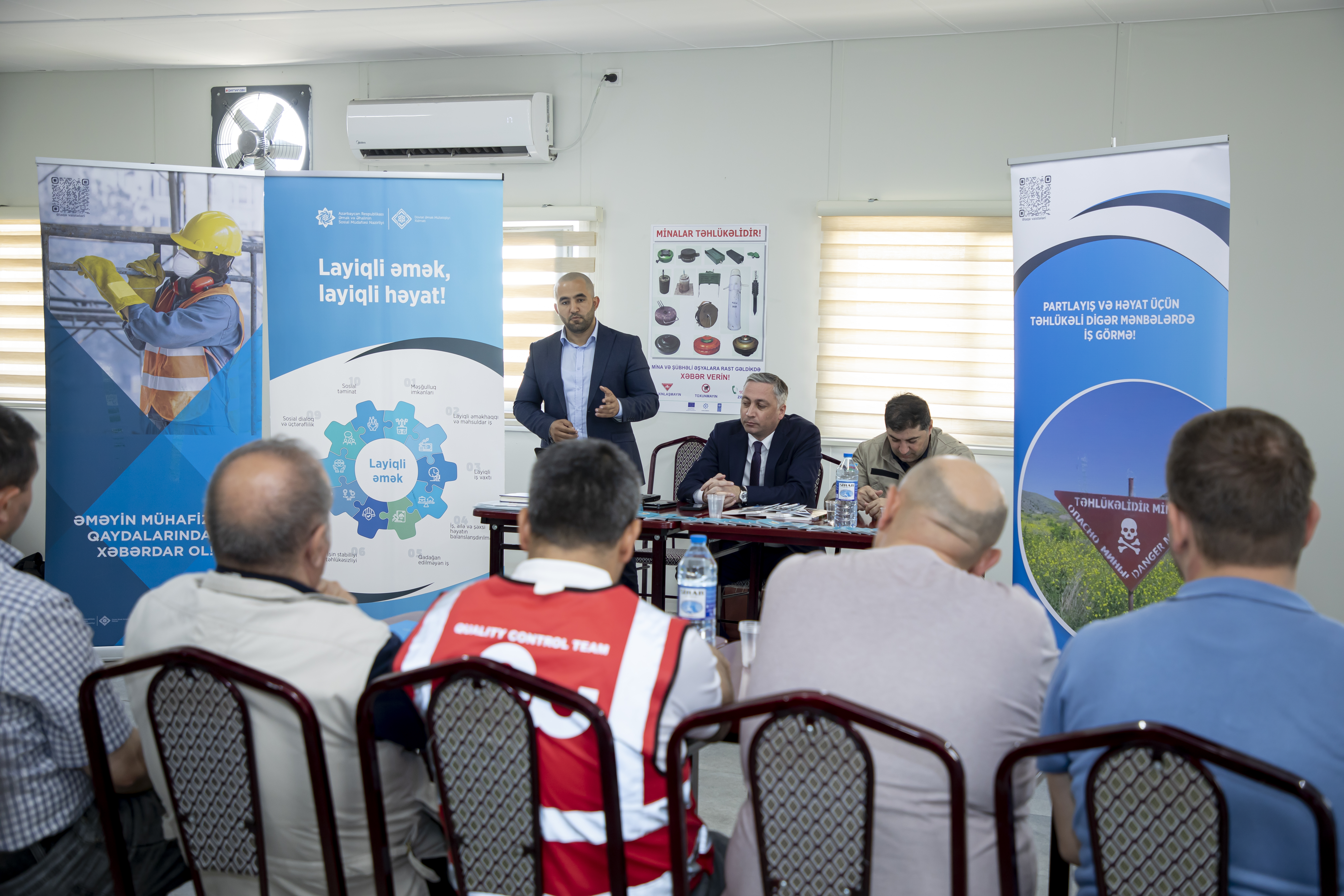 İştirakçılar ölkəmizdə layiqli əməyin təminatı sahəsində aparılan dövlət siyasəti, əmək qanunvericiliyi, habelə əməyin mühafizəsi və mina təhlükəsizliyi qaydaları barədə məlumatlandırılıb. Tədbirin təşkilatçıları olan qurumların fəaliyyəti barədə məlumat verilib.