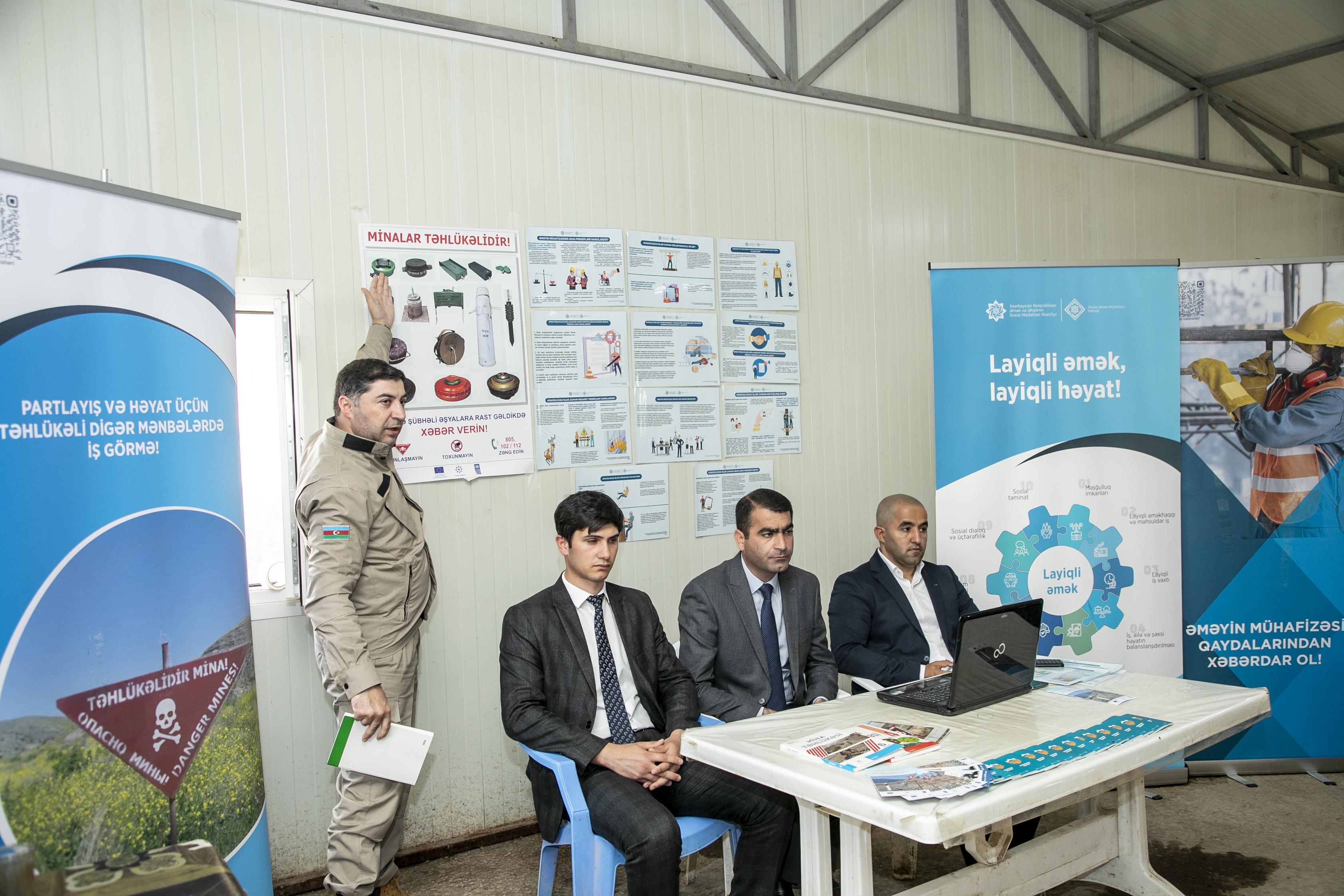 İştirakçılar ölkəmizdə layiqli əməyin təminatı sahəsində aparılan dövlət siyasəti, əmək qanunvericiliyi, habelə əməyin mühafizəsi və mina təhlükəsizliyi qaydaları barədə məlumatlandırılıb. Tədbirin təşkilatçıları olan qurumların fəaliyyəti barədə məlumat verilib.