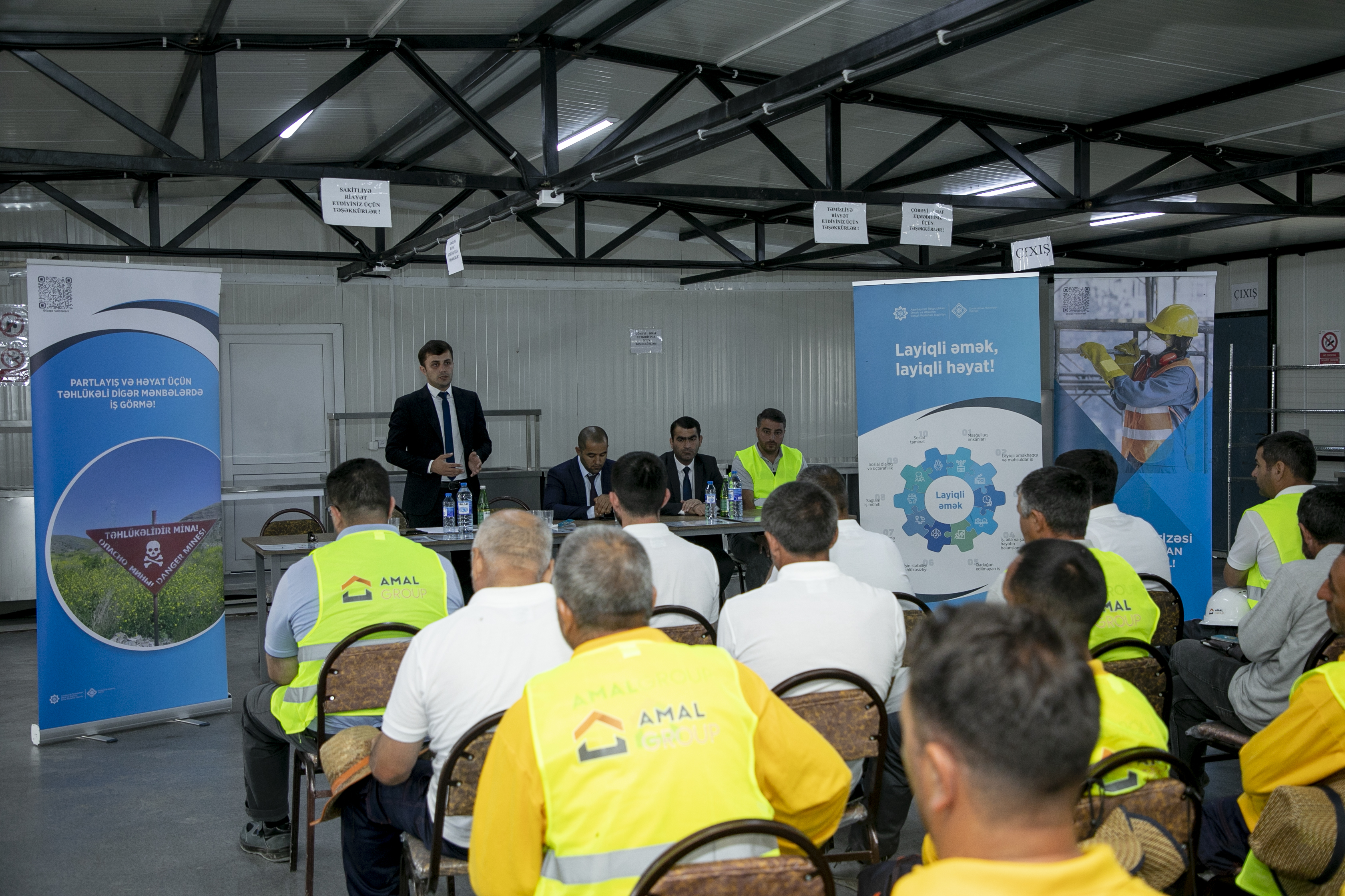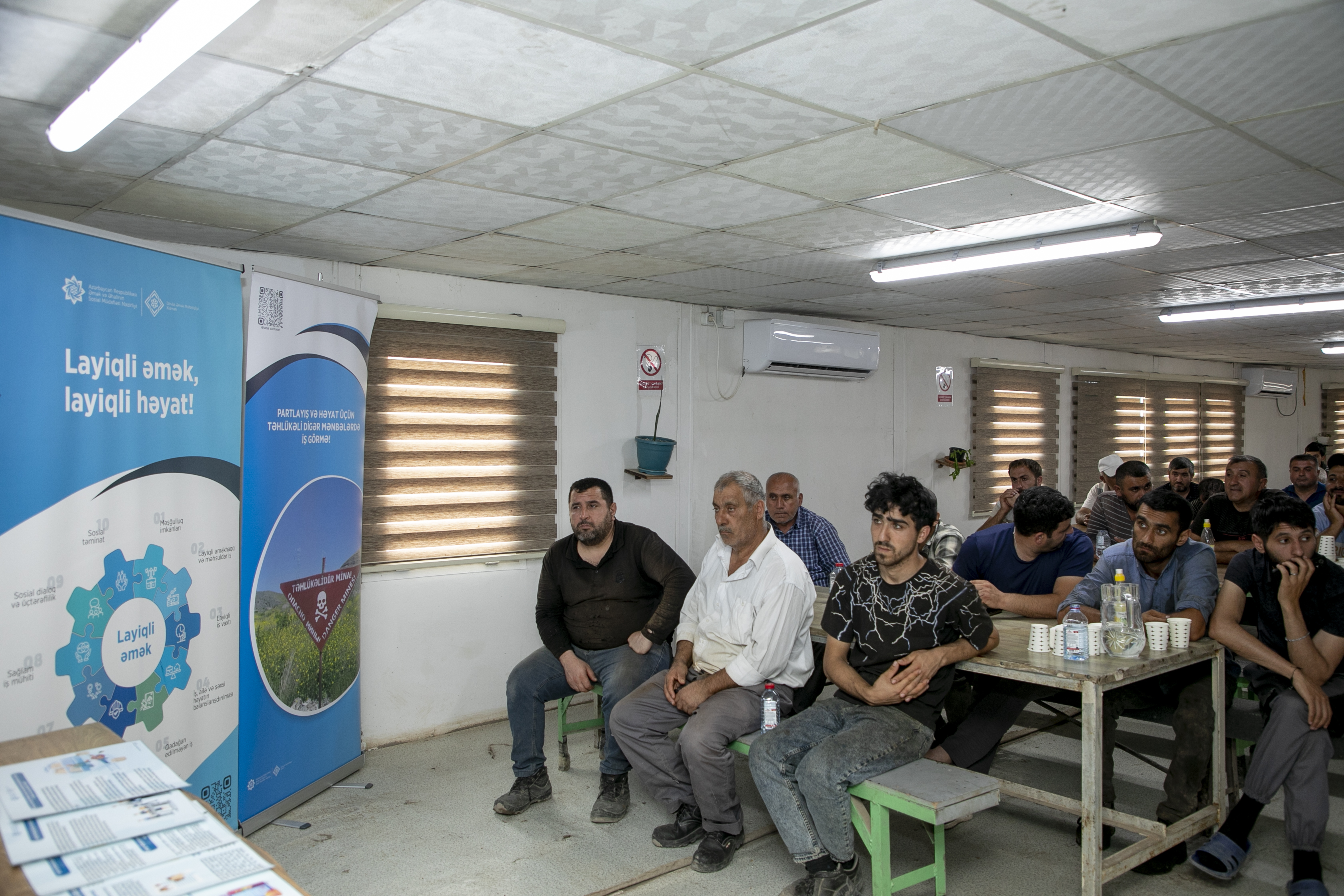 İştirakçılar ölkəmizdə layiqli əməyin təminatı sahəsində aparılan dövlət siyasəti, əmək qanunvericiliyi, habelə əməyin mühafizəsi və mina təhlükəsizliyi qaydaları barədə məlumatlandırılıb. Tədbirin təşkilatçıları olan qurumların fəaliyyəti barədə məlumat verilib.