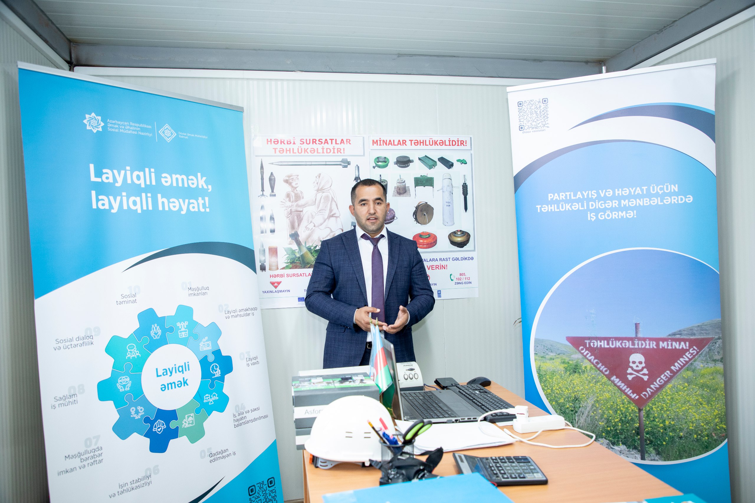 İştirakçılar ölkəmizdə layiqli əməyin təminatı sahəsində aparılan dövlət siyasəti, əmək qanunvericiliyi, habelə əməyin mühafizəsi və mina təhlükəsizliyi qaydaları barədə məlumatlandırılıb.
