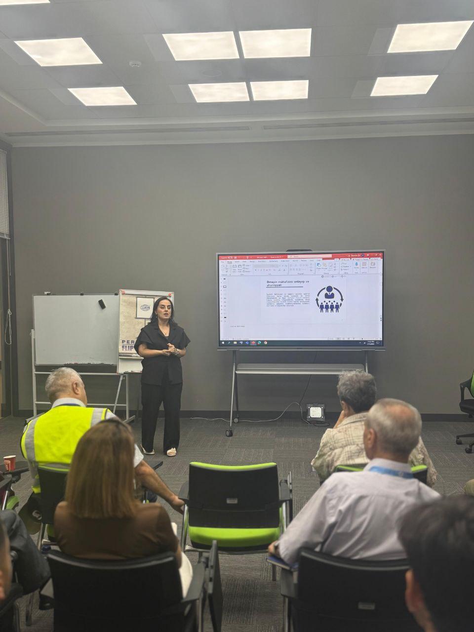 Təlimdə Əməyin Mühafizəsi Mərkəzinin və İcbari Sığorta Bürosunun nümayəndələri əməyin mühafizəsi və istehsalatda bədbəxt hadisələr, peşə xəstəlikləri nəticəsində peşə əmək qabiliyyətinin itirilməsi hallarından icbari sığorta mövzuları ilə bağlı təqdimatlarla çıxış ediblər.