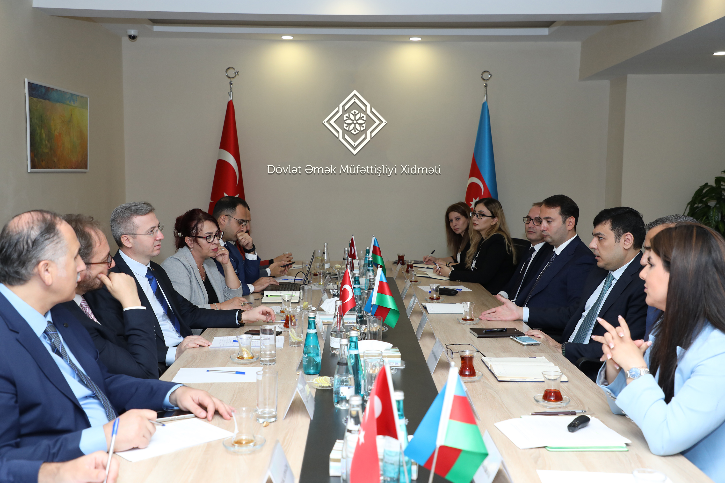 Azərbaycan Respublikasının Əmək və Əhalinin Sosial Müdafiəsi Nazirliyi yanında Dövlət Əmək Müfəttişliyi Xidmətində ölkəmizdə səfərdə olan Türkiyə Respublikası Əmək və Sosial Müdafiə Nazirliyinin Əmək Müfəttişliyi Qurumunun rəhbəri Bekir Aktürkün başçılıq etdiyi nümayəndə heyəti ilə görüş olub.