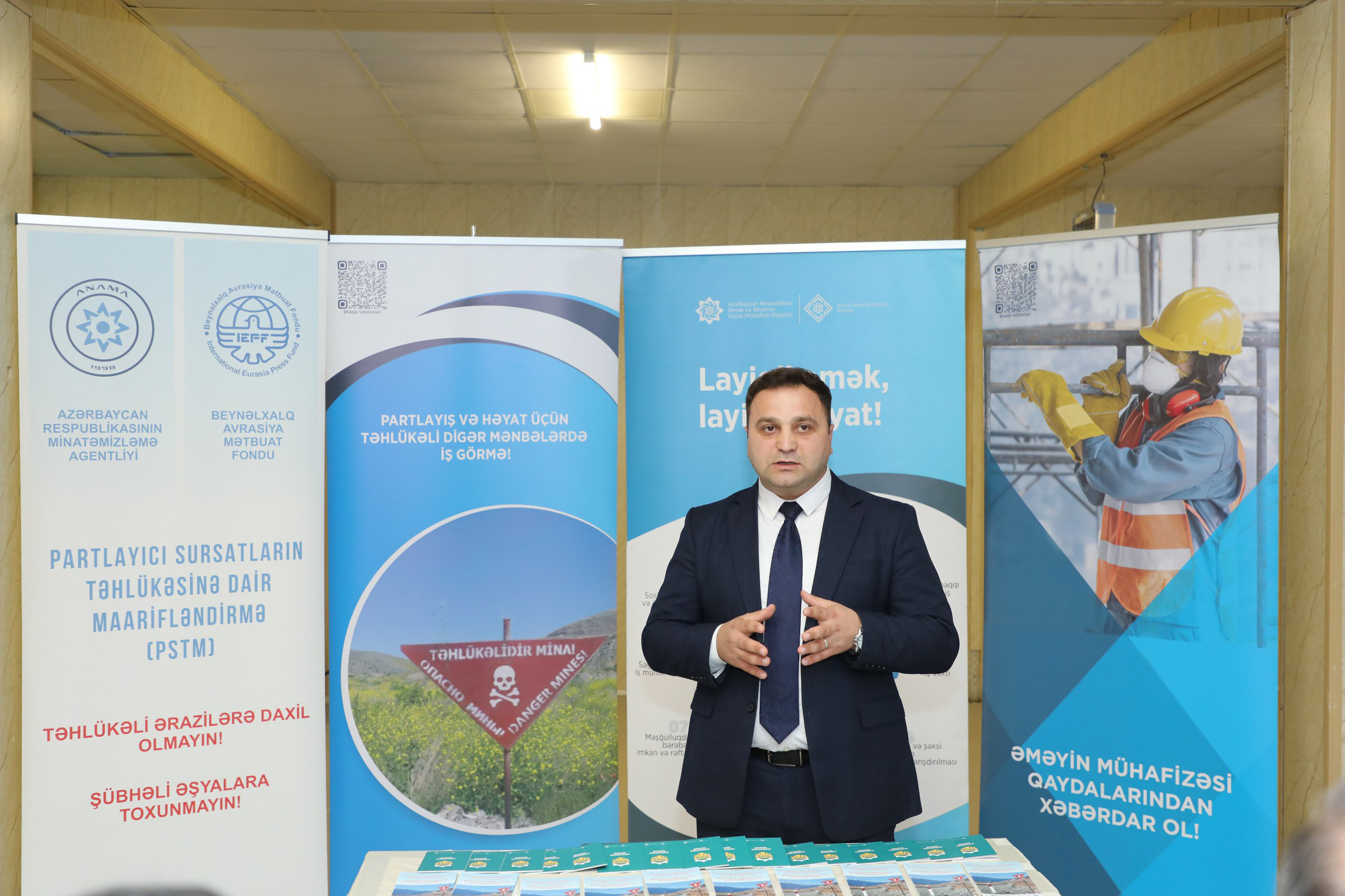 Tədbirdə Dövlət Əmək Müfəttişliyi Xidməti, Azərbaycan Respublikasının Minatəmizləmə Agentliyi, Beynəlxalq Avrasiya Mətbuat Fondunun əməkdaşları iştirak edib.
