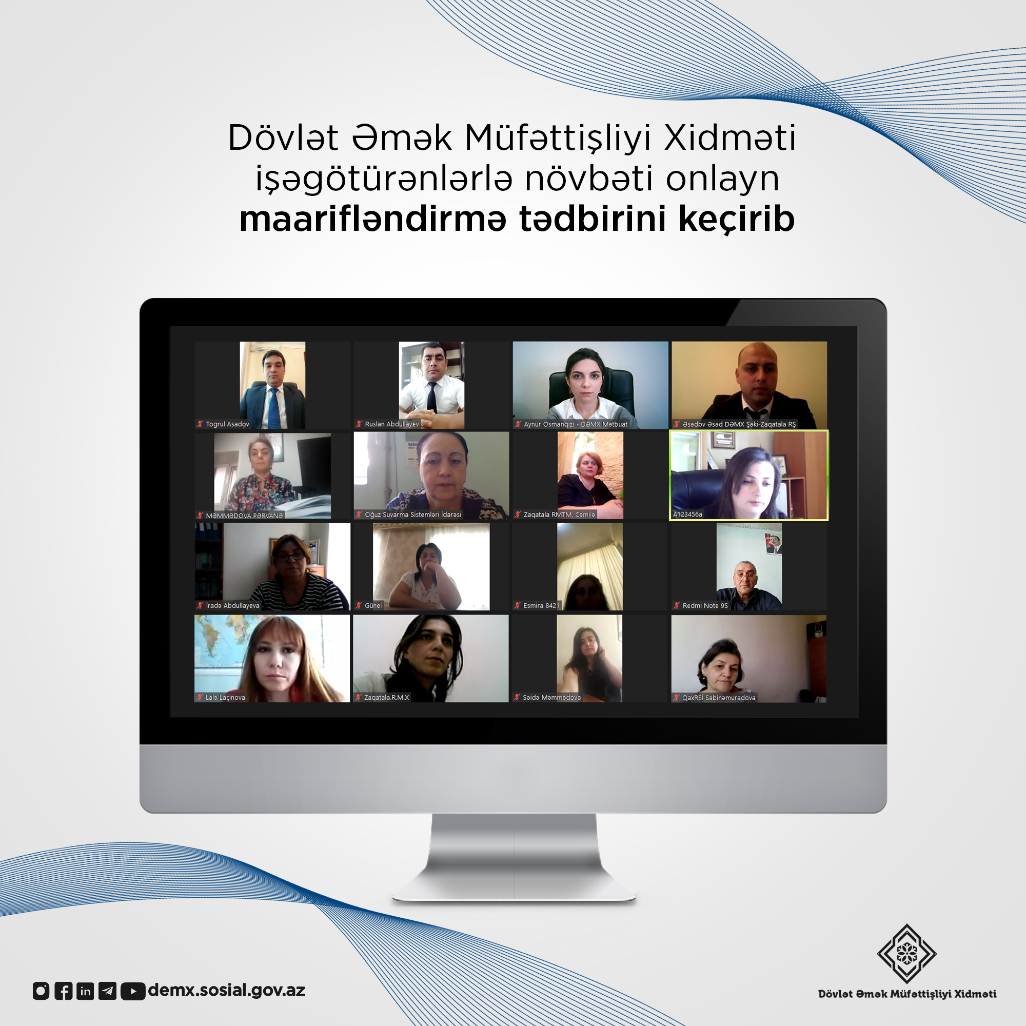 Əmək və Əhalinin Sosial Müdafiəsi Nazirliyi yanında Dövlət Əmək Müfəttişliyi Xidməti işəgötürənlər üçün "Qadınların və fiziki məhdudiyyətli şəxslərin əmək hüquqları" mövzusunda növbəti maarifləndirici onlayn tədbir keçirib.
