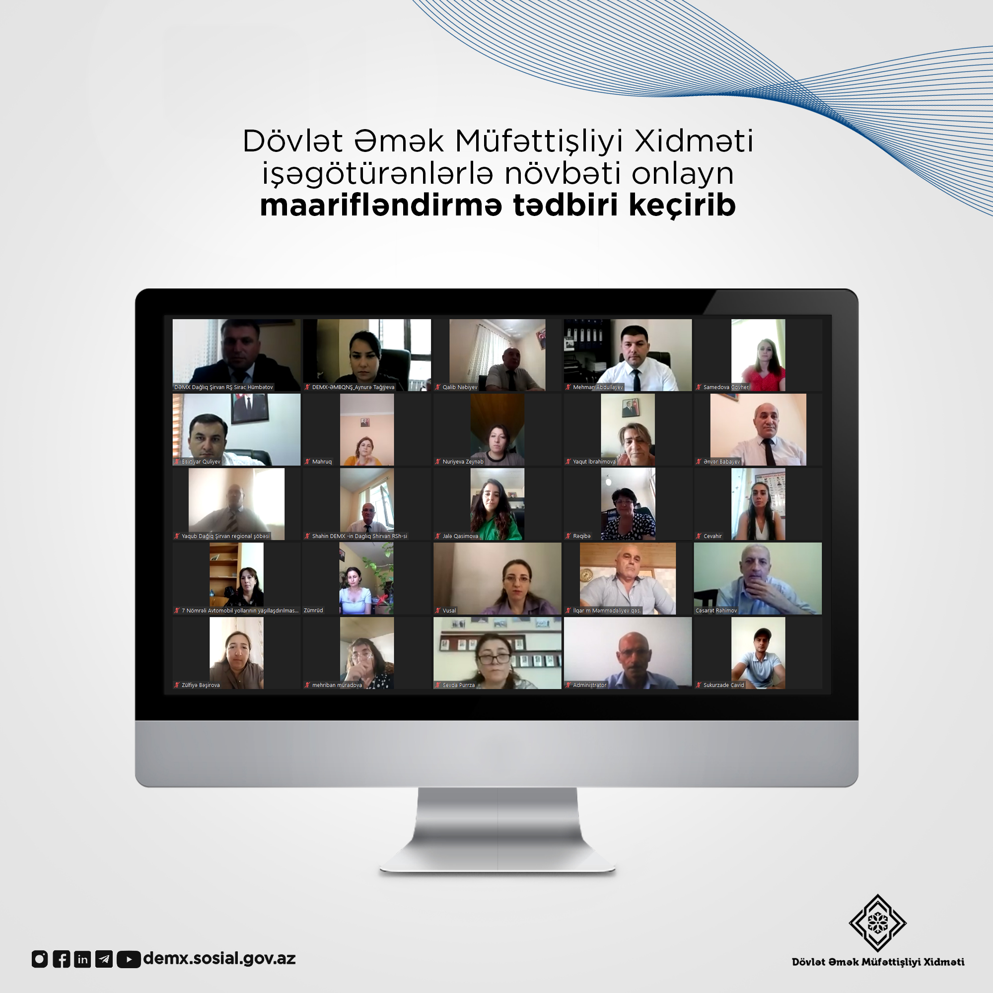 Əmək və Əhalinin Sosial Müdafiəsi Nazirliyi yanında Dövlət Əmək Müfəttişliyi Xidməti işəgötürənlər üçün "Əmək münasibətlərinin rəsmiləşdirilməsi, əmək müqaviləsinin bağlanması, şərtlərinin dəyişdirilməsi və xitam verilməsinin əsasları və qaydaları" mövzusunda növbəti maarifləndirici onlayn tədbir keçirib.