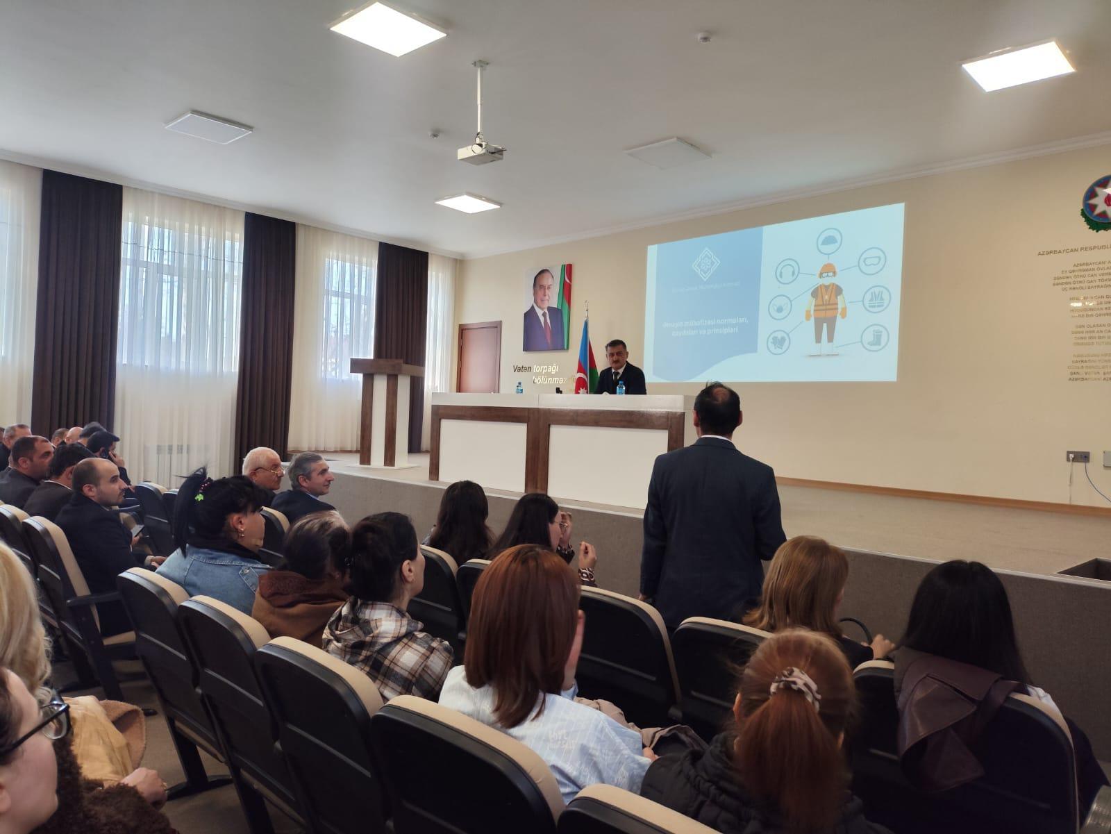 Daha sonra iştirakçılara müəssisələrdə əməyin mühafizəsi üzrə norma və qaydaların tətbiqi, qəbul edilmiş yeni standartların əhatə etdiyi sahələr, eləcə də Əməyin Mühafizəsi Mərkəzinin fəaliyyət istiqamətləri barədə ətraflı məlumat verilib.