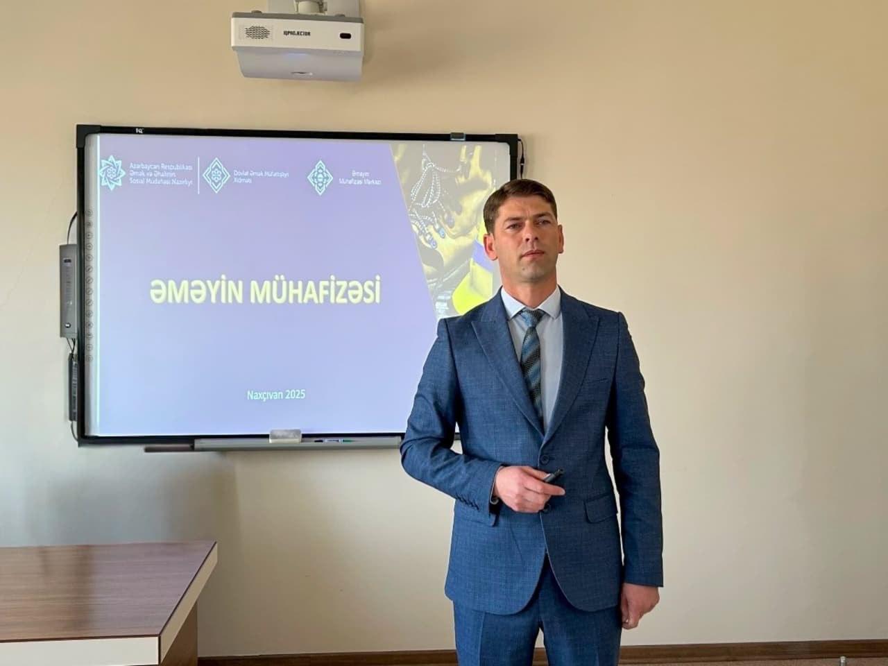 Tədbir “İş yerlərində əməyin mühafizəsi, texniki təhlükəsizlik, iş yerlərinin attestasiyası və işçilərin bədbəxt hadisələrdən icbari sığortası” mövzusuna həsr edilib.