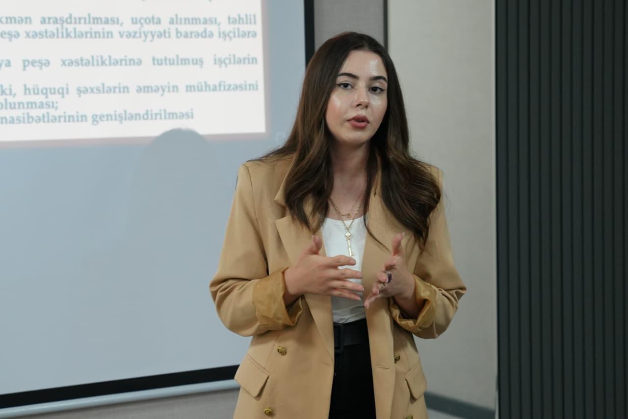 Təlimçilər təqdimatlarla çıxış edərək işçilərin əməyinin mühafizəsi, sağlam və təhlükəsiz əmək şəraitinin təmin olunması mövzusunda ətraflı məlumat veriblər. Bununla yanaşı, müəssisələrdə əməyin mühafizəsi üzrə norma və qaydaların tətbiqi, qəbul edilmiş yeni standartların əhatə etdiyi sahələr, eləcə də Əməyin Mühafizəsi Mərkəzinin fəaliyyət istiqamətləri barədə iştirakçılar məlumatlandırılıb.