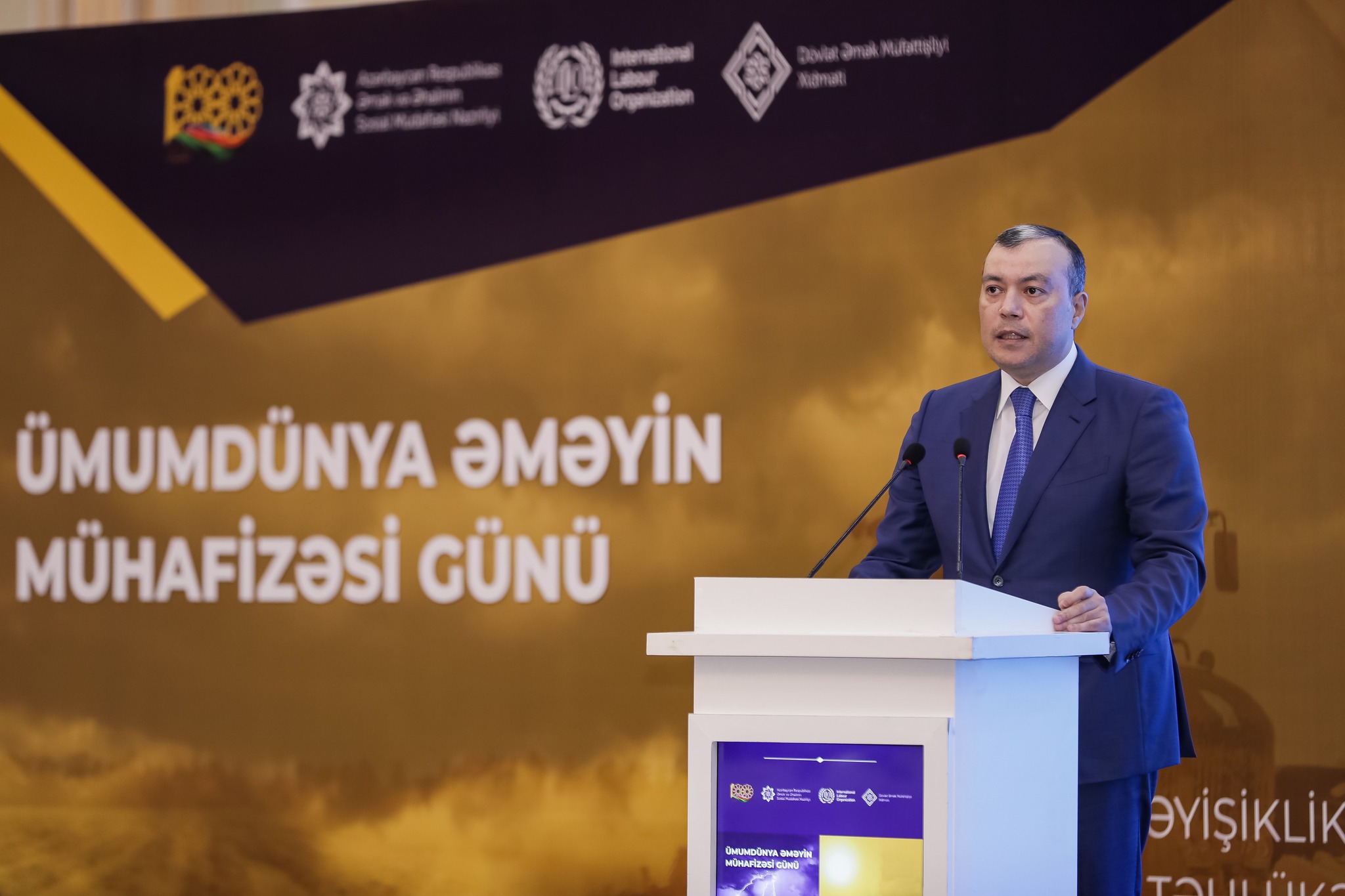Əmək və əhalinin sosial müdafiəsi naziri Sahil Babayev Azərbaycan üçün 2024-cü ilin ən mühüm hadisəsi olaraq bu il ölkəmizin COP29-a ev sahibliyi edəcəyini bildirib. Bu missiyaya uyğun olaraq Prezident İlham Əliyevin Sərəncamı ilə 2024-cü ilin Azərbaycanda “Yaşıl dünya naminə həmrəylik ili” elan edildiyini diqqətə çatdırıb. Nazir iqlim dəyişikliyinin əməyin mühafizəsinə müxtəlif yollarla təsir etməsinin işçilərin sağlamlığı və təhlükəsizliyinin təmin olunmasını daha da aktuallaşdırdığını, hazırki konfransın da cəmiyyətin, xüsusilə işəgötürənlərin bu mövzuya diqqətinin daha da artırılmasına xidmət etdiyini bildirib. O, Beynəlxalq Əmək Təşkilatının (BƏT) Ümumdünya Əməyin Mühafizəsi günü ilə əlaqədar 2024-cü il üçün müəyyən etdiyi devizin də “İqlim dəyişikliyinin əməyin mühafizəsinə təsiri” olduğunu qeyd edib.