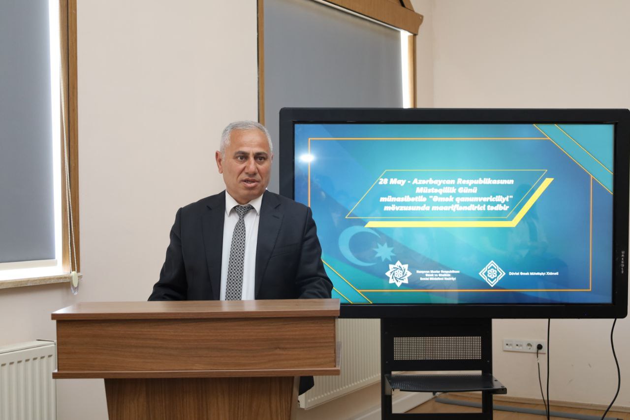 Əməyin Mühafizəsi Mərkəzinin Naxçıvan filialı regionda maarifləndirmə işlərini davam etdirir. Növbəti maarifləndirmə tədbiri 28 May - Müstəqillik Günü münasibətilə "Əmək qanunvericiliyi" mövzusuna həsr olunub.