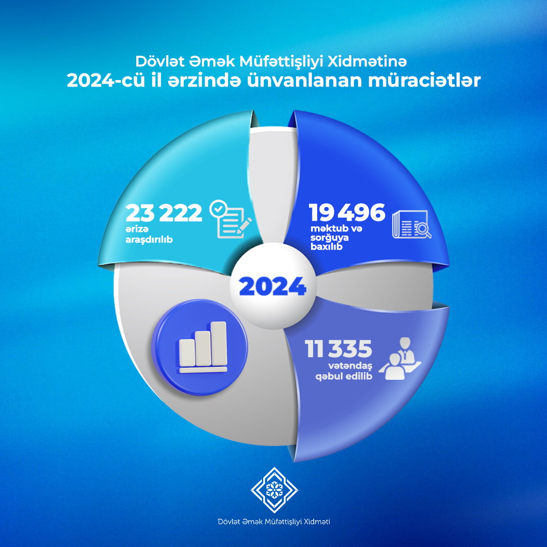 2024-cü il ərzində Əmək və Əhalinin Sosial Müdafiəsi Nazirliyi yanında Dövlət Əmək Müfəttişliyi Xidmətinə daxil olan 23 222 ərizə müvafiq qaydada araşdırılaraq cavablandırılıb.
