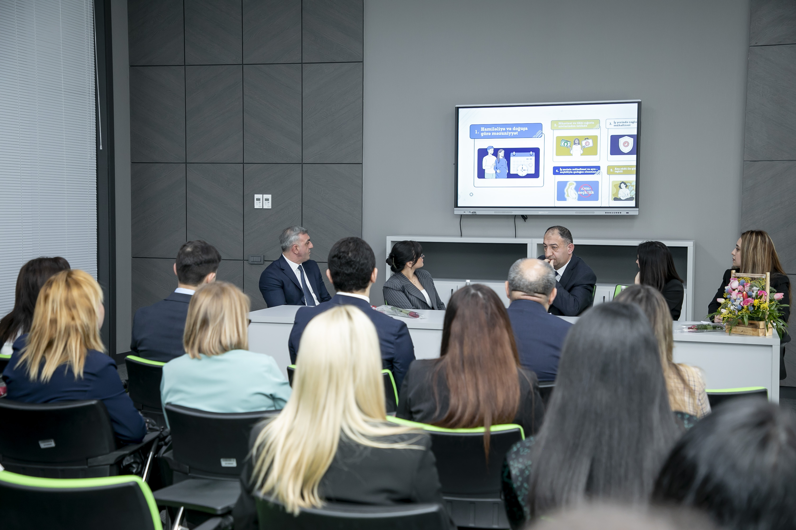 Tədbirdə analığın mühafizəsinə həsr olunmuş videoçarx nümayiş olunub, qadınların əmək hüquqlarına aid təqdimatlarla çıxışlar edilib.