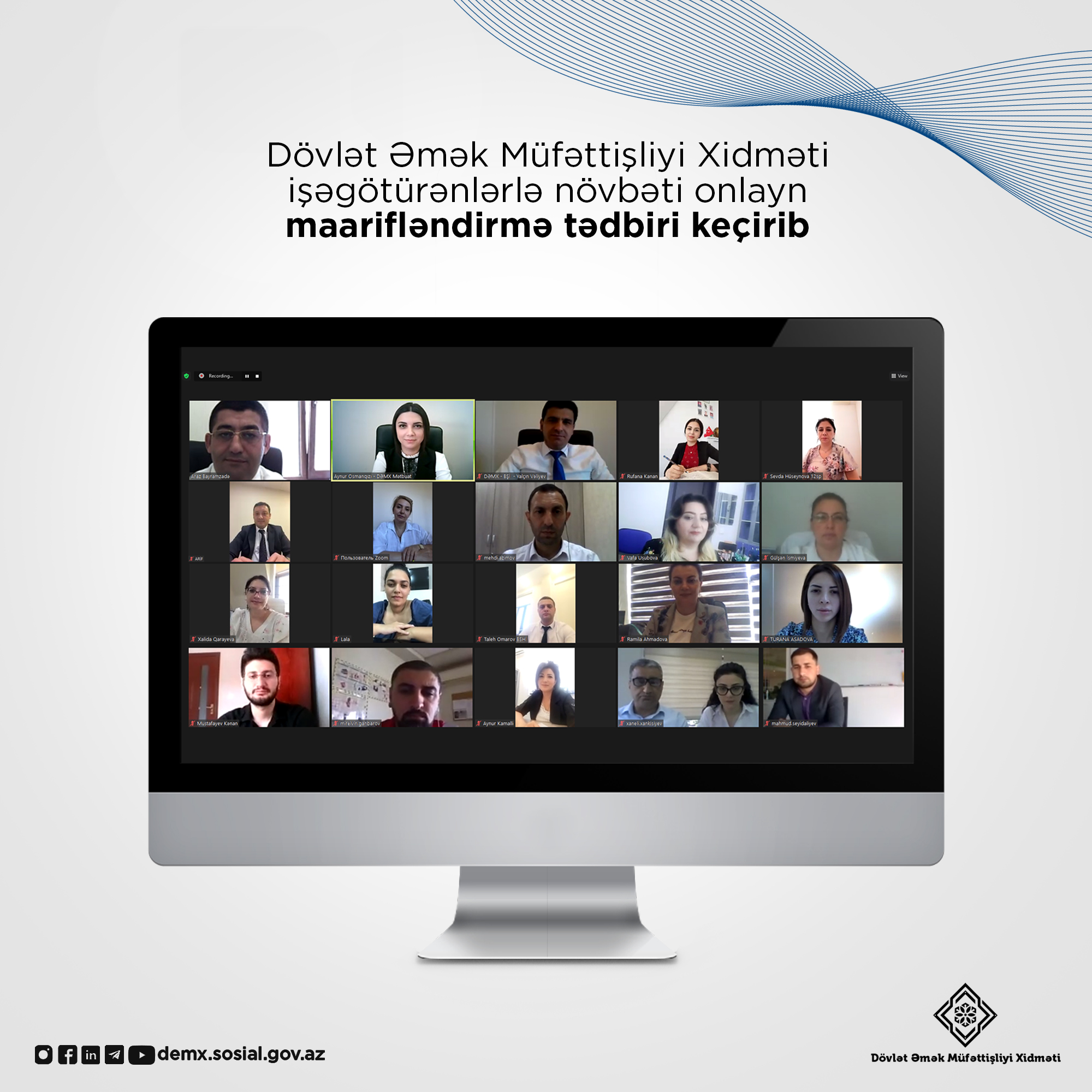 Əmək və Əhalinin Sosial Müdafiəsi Nazirliyi yanında Dövlət Əmək Müfəttişliyi Xidməti işəgötürənlər üçün “İnsan Hüquqları Aylığı”na həsr edilmiş "Qadınların və fiziki məhdudiyyətli şəxslərin əmək hüquqları" mövzusunda növbəti maarifləndirici onlayn tədbir keçirib.