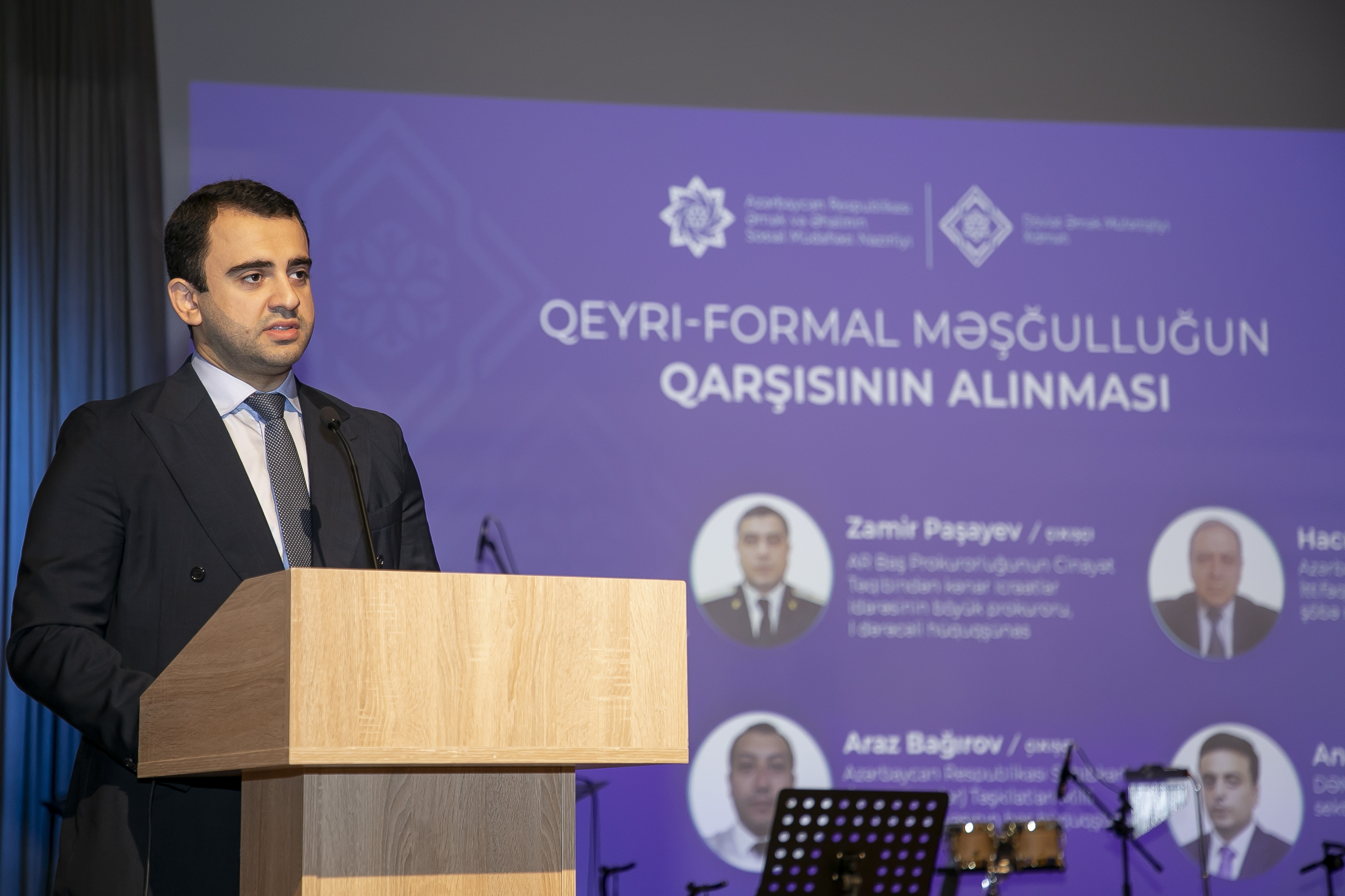 Açılış nitqi ilə çıxış edən Dövlət Əmək Müfəttişliyi Xidmətinin Bakı Şəhər İdarəsinin rəisi Rüfət Əliyev bildirib ki, qeyri-rəsmi məşğulluq əmək ehtiyatlarından səmərəli istifadə olunmasına, layiqli əməyin dəstəklənməsinə, işəgötürənlərin də iqtisadi mənafelərinə, müəssisədə əmək məhsuldarlığına, keyfiyyətli istehsal və xidmət prosesinə ciddi zərər vurur.