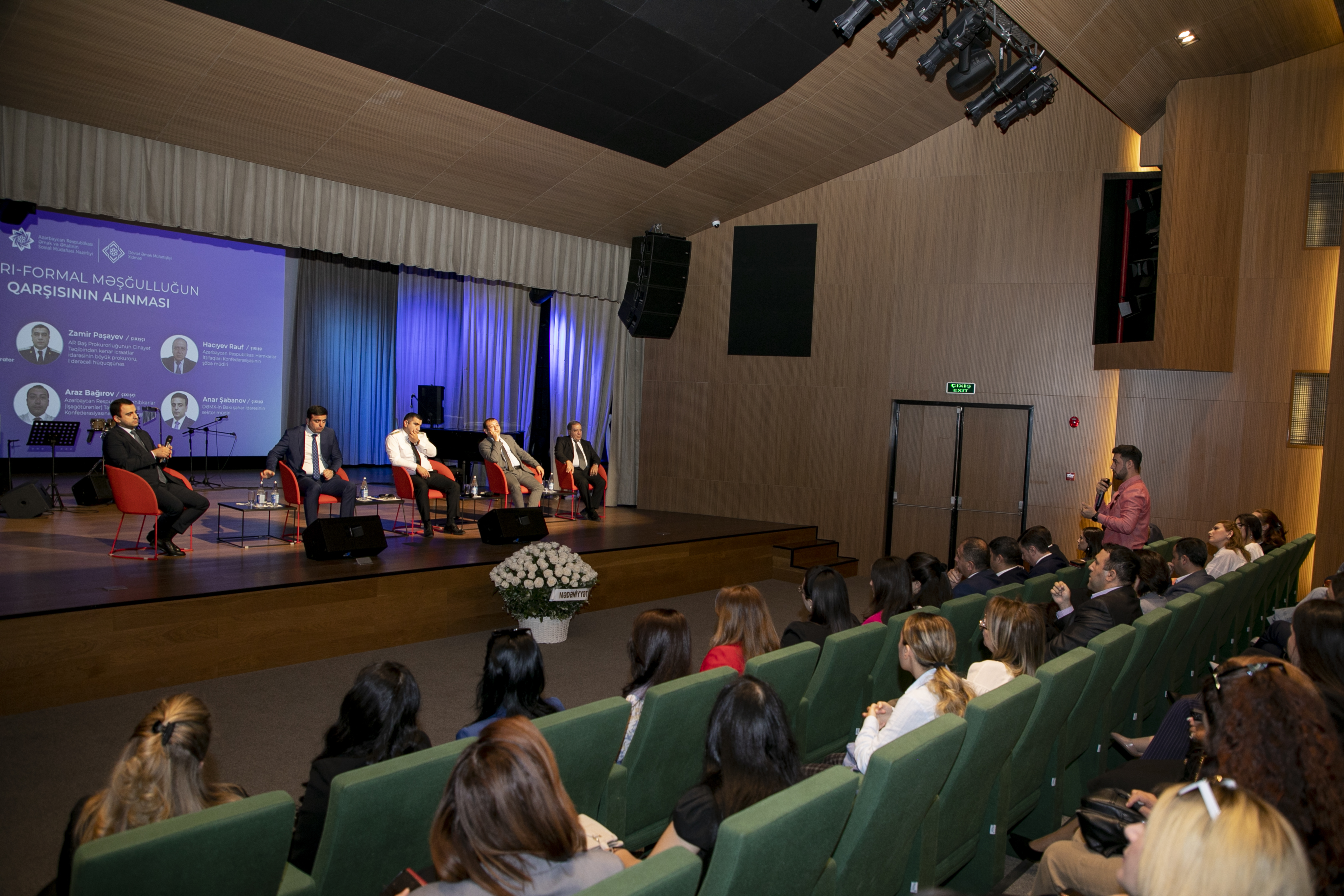 Mövzu ətrafında Baş Prokurorluğun Cinayət Təqibindən Kənar İcraatlar İdarəsi, Azərbaycan Həmkarlar İttifaqları Konfederasiyası, Azərbaycan Respublikası Sahibkarlar (İşəgötürənlər) Təşkilatları Milli Konfederasiyası və Xidmətin Bakı Şəhər İdarəsinin nümayəndələri tərəfindən qanunvericiliyinin tələbləri barədə çıxışlar edilib.