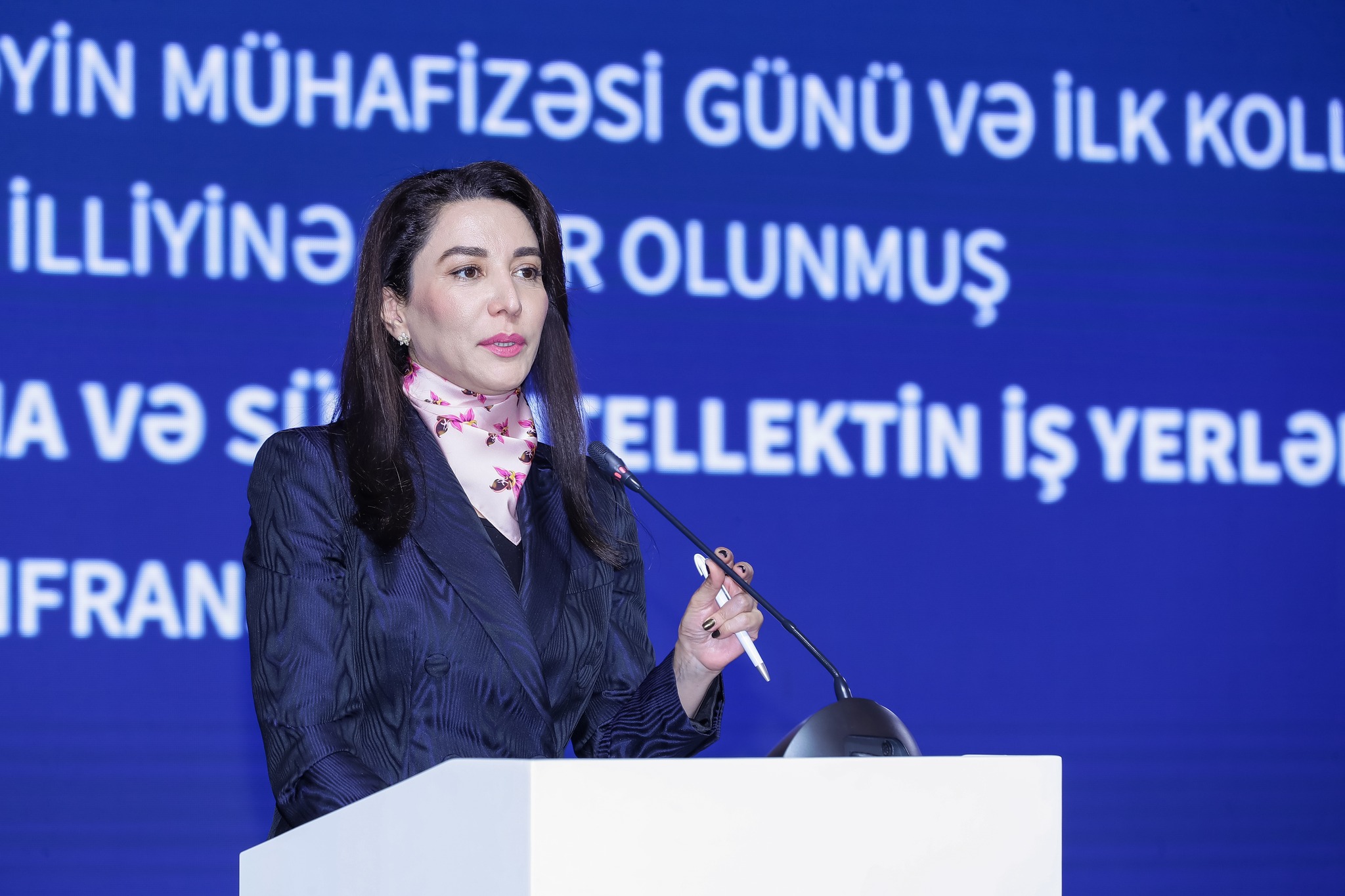 Sonra çıxış edən Ailə, Qadın və Uşaq Problemləri üzrə Dövlət Komitəsinin sədri Bahar Muradova süni intellektin insan yaradıcılığı üçün yeni imkanlar açdığını, həmçinin onun faydalarının maksimuma atdırılması və mümkün zərərlərin minimuma endirilməsi üçün tədbirlərin görülməsinin vacibliyini vurğulayıb. Azərbaycan Respublikasının İnsan Hüquqları üzrə Müvəkkili, Layiqli Əmək Səfiri Səbinə Əliyeva əmək bazarında insan amilinin önəmini qeyd edib, elmi-texniki tərəqqinin imkanlarından söz açıb. Bildirilib ki, qlobal informasiya cəmiyyətinin formalaşması və dinamik inkişaf edən informasiya-kommunikasiya texnologiyaları cəmiyyətdə yalnız texniki və sosial dəyişiklikləri şərtləndirmir, eləcə də hüquqi yanaşmanın da dəyişməsini tələb edir.
