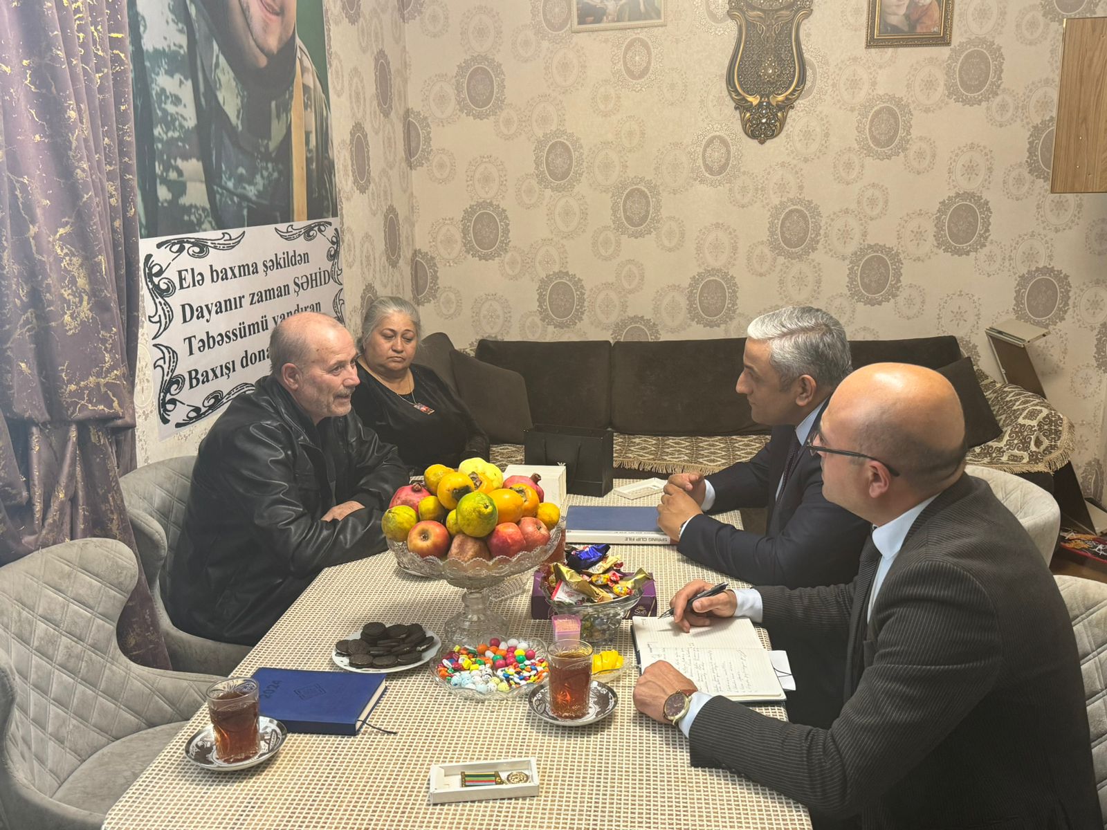 Ailə ilə söhbət zamanı şəhidin keçdiyi şərəfli döyüş yolundan bəhs olunub, onun xatirəsinin əbədi olaraq yaşayacağı vurğulanıb. Xidmət əməkdaşları ailənin sosial vəziyyəti ilə maraqlanıb.