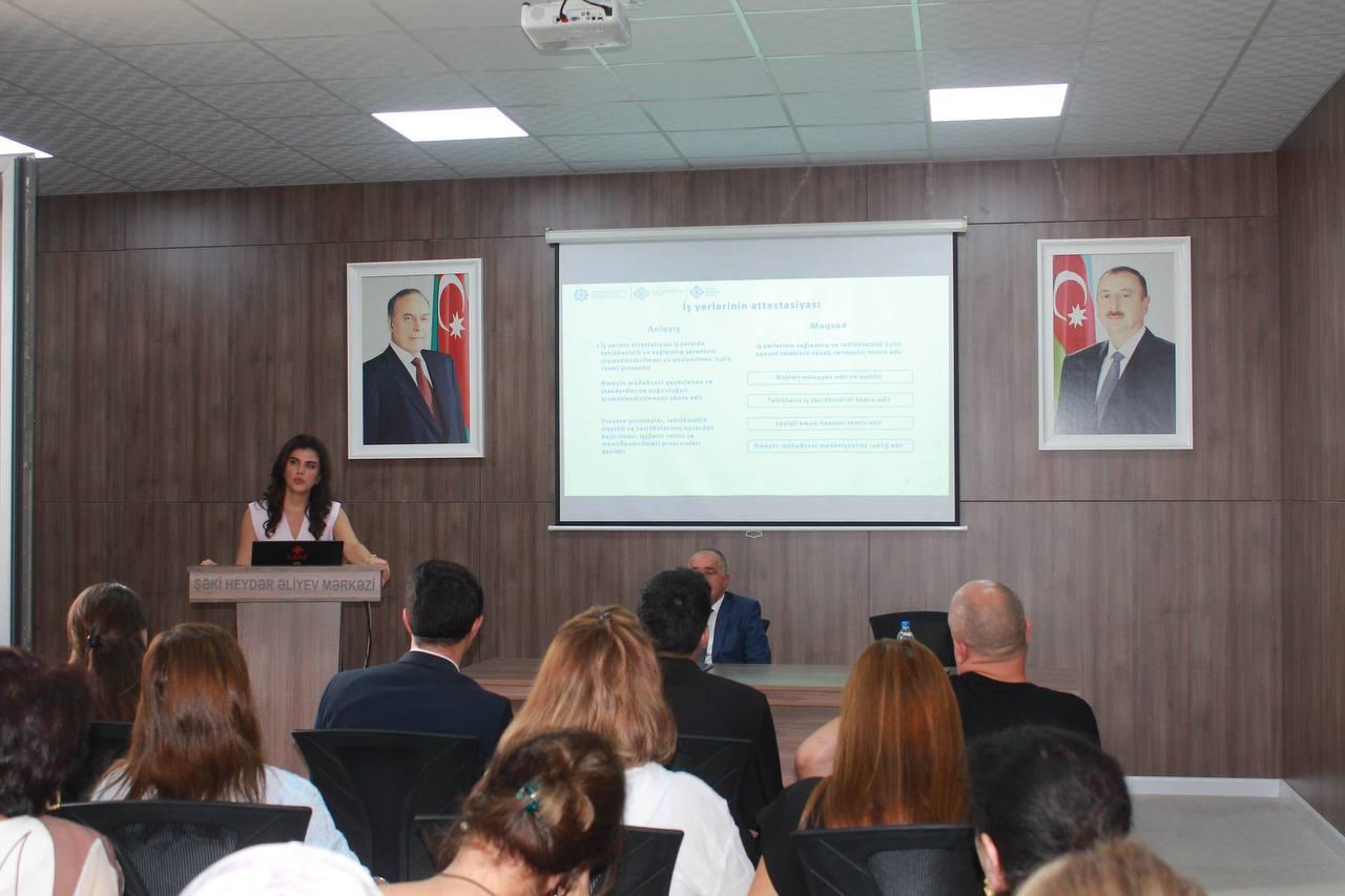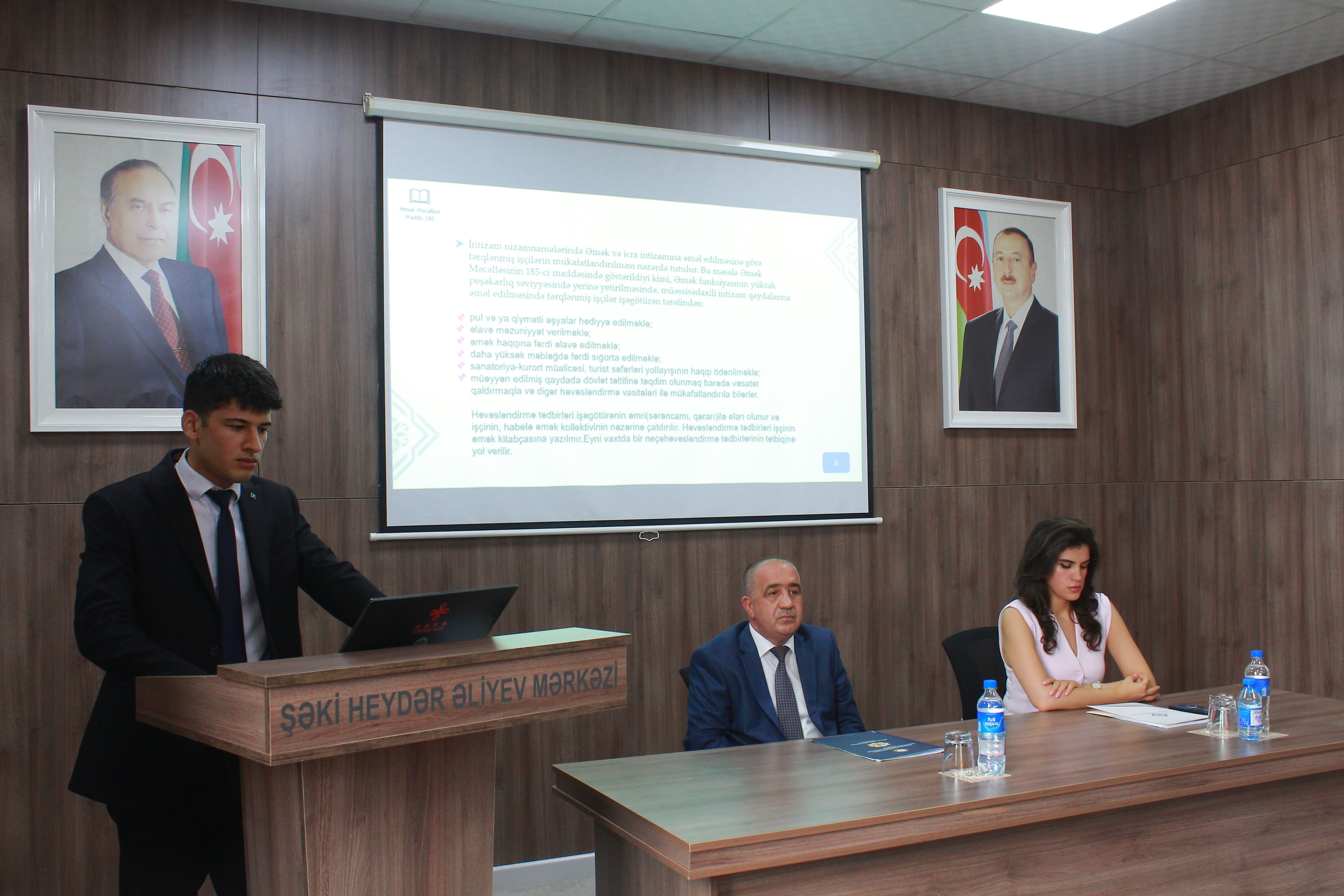 Əmək və Əhalinin Sosial Müdafiəsi Nazirliyi yanında Dövlət Əmək Müfəttişliyi Xidməti Şəki şəhərində işəgötürənlər üçün “Əmək və icra intizamının təmin edilməsi qaydaları”, “İş yerlərində əməyin mühafizəsi” mövzularında maarifləndirmə tədbiri keçirib.