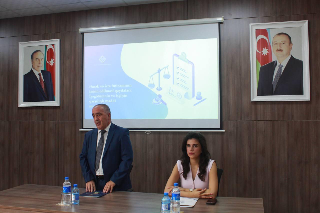 Həmçinin Əməyin Mühafizəsi Mərkəzinin fəaliyyət istiqamətləri və əməyin mühafizəsi sahəsində görülən işlər barədə məlumat verilib. Müəssisələrdə əməyin mühafizəsi üzrə standart, norma və qaydaların tətbiqinə göstərilən dəstəyi vurğulanıb, və yeni qəbul edilmiş standartlarla bağlı iştirakçılar məlumatlandırılıb.