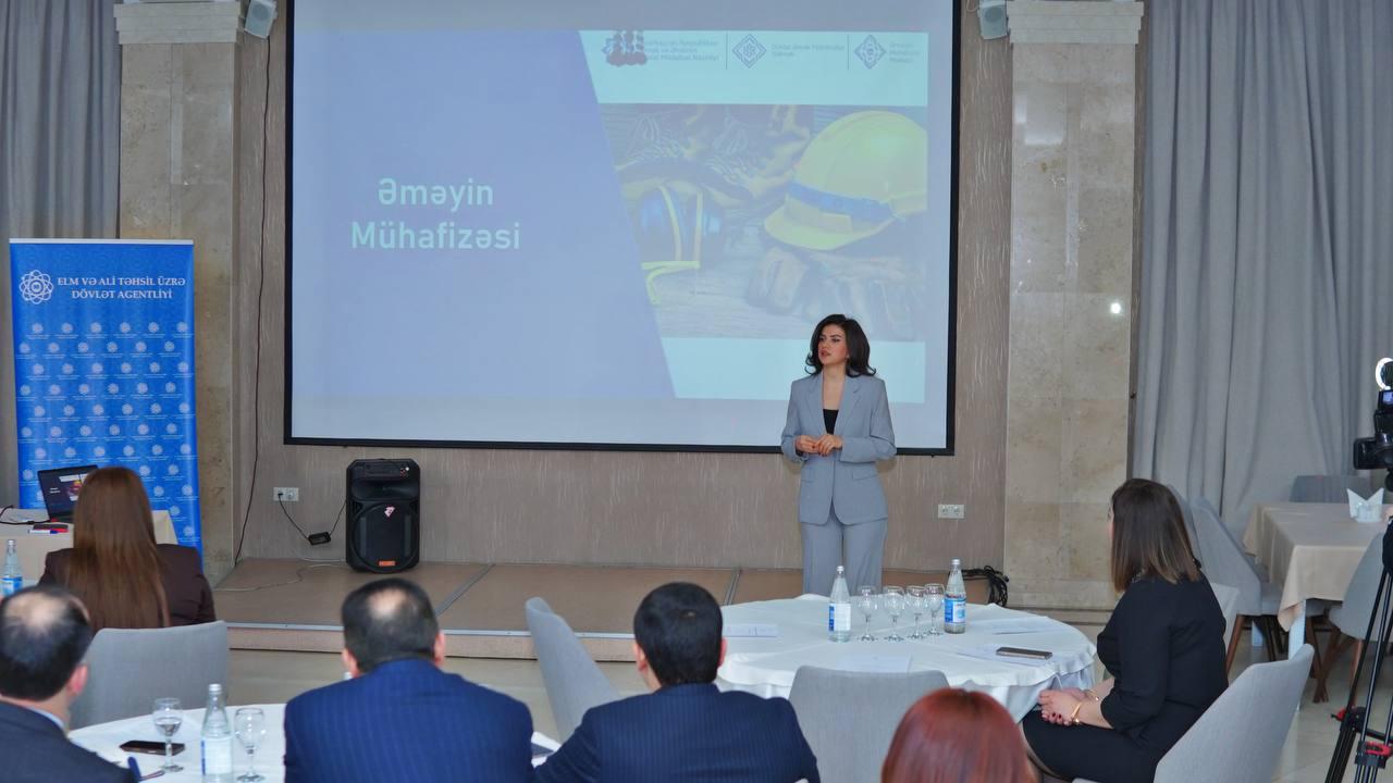 Elm və Ali Təhsil üzrə Dövlət Agentliyinin təşkilatçılığı ilə keçirilən təlimdə 16 orta ixtisas təhsili müəssisəsinin rəhbəri iştirak edib. Təlim zamanı əməyin mühafizəsi üzrə təhlükəsizlik qaydalarına riayət olunmasının əhəmiyyəti, istehsalatda baş verə biləcək bədbəxt hadisələrin və peşə xəstəliklərinin qarşısının alınması istiqamətində görülən tədbirlər barədə iştirakçılara ətraflı məlumat verilib.