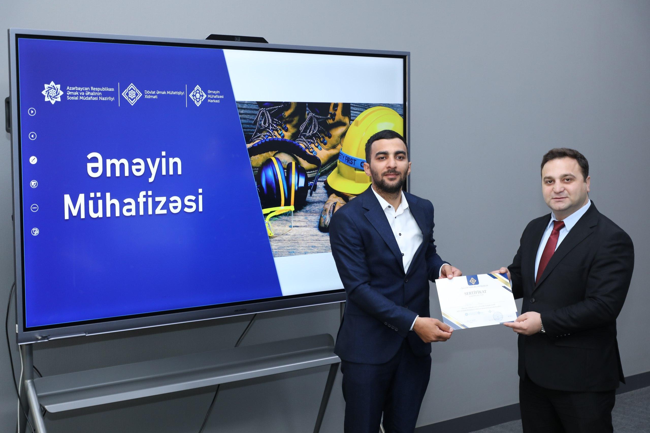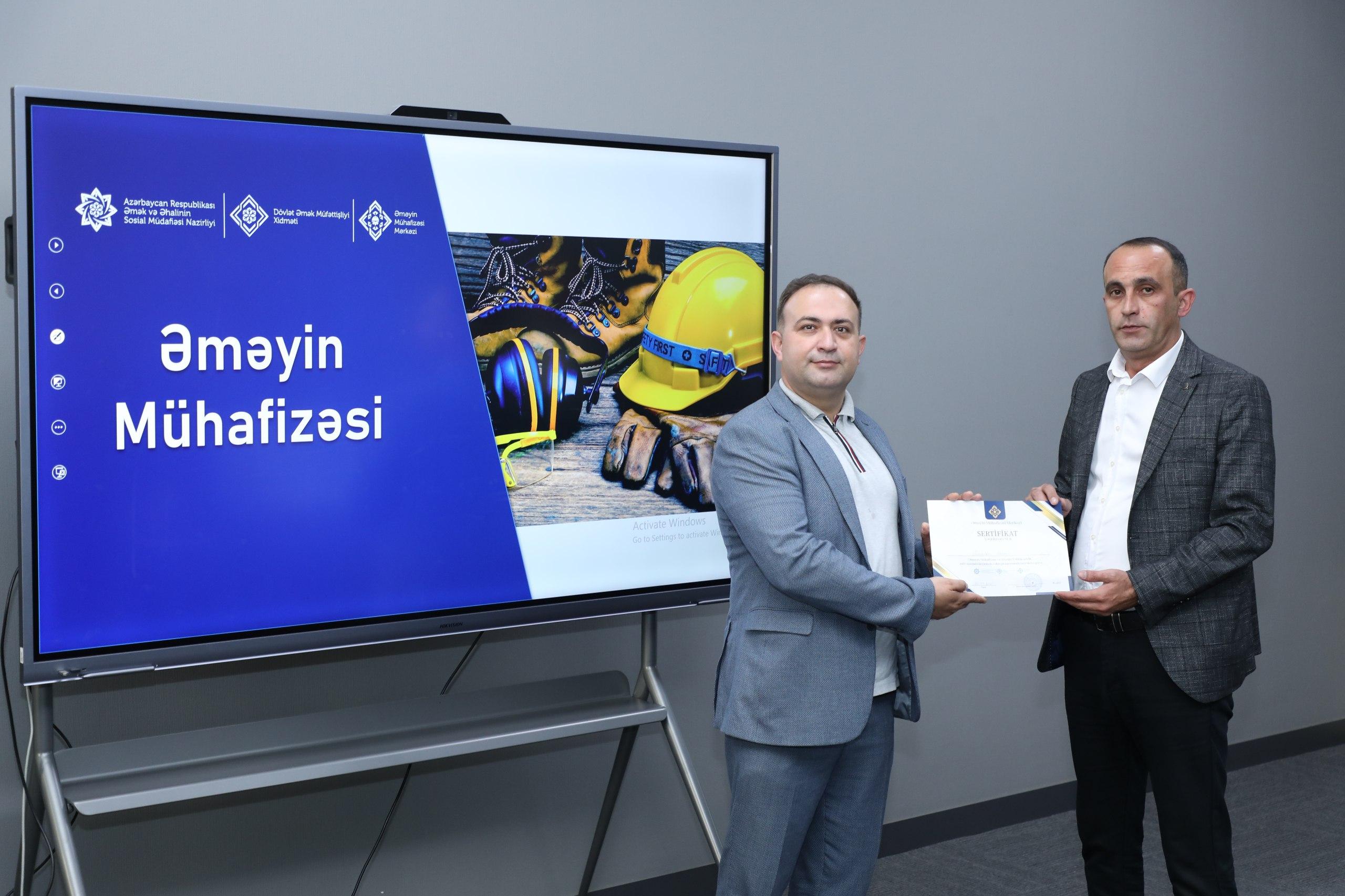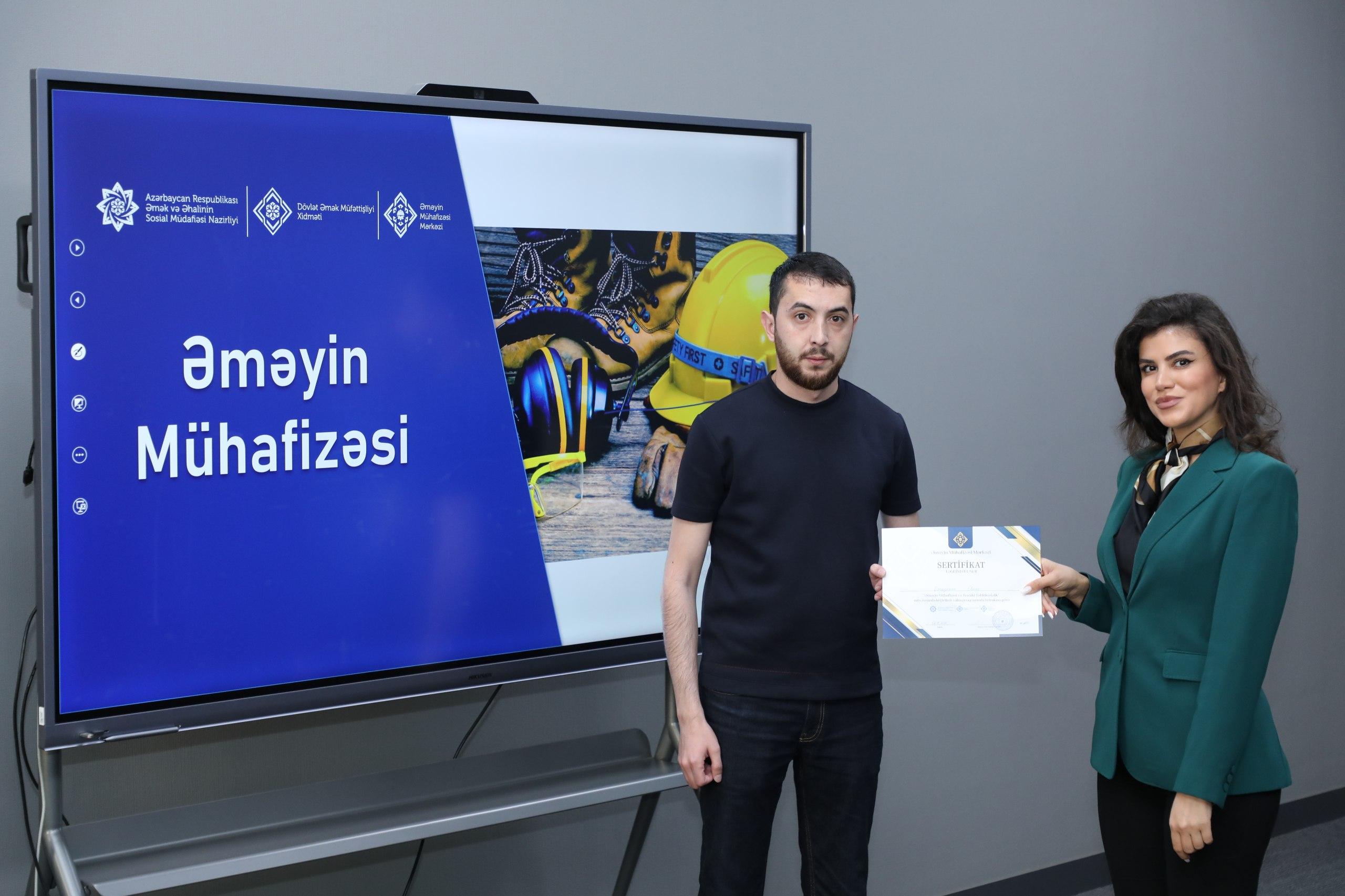 Əmək və Əhalinin Sosial Müdafiəsi Nazirliyi yanında Dövlət Əmək Müfəttişliyi Xidməti tərəfindən SƏTƏM (sağlamlıq, əməyin təhlükəsizliyi və ətraf mühitin mühafizəsi) mütəxəssisləri üçün təşkil olunan təlim proqramı uğurla başa çatıb.
