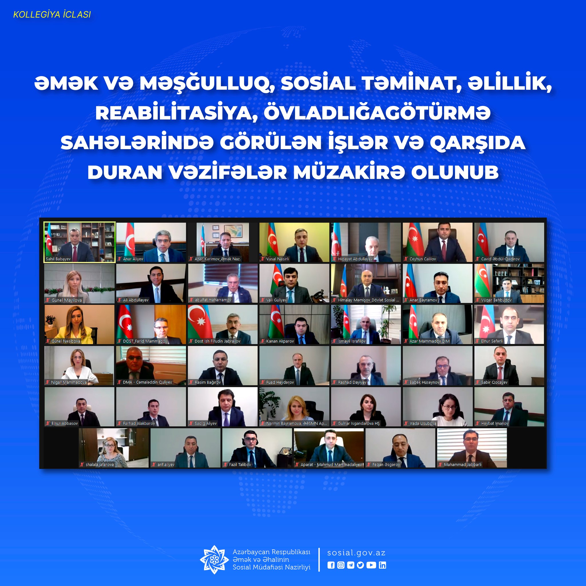 Bu barədə Əmək və Əhalinin Sosial Müdafiəsi Nazirliyində kollegiya iclasında bildirilib. Əmək və əhalinin sosial müdafiəsi naziri, kollegiyanın sədri Sahil Babayev Prezident İlham Əliyevin tapşırıqları əsasında həyata keçirilən sosial islahatların vətəndaş rifahının və məmnunluğunun təminatı məqsədi daşıdığını bildirib.