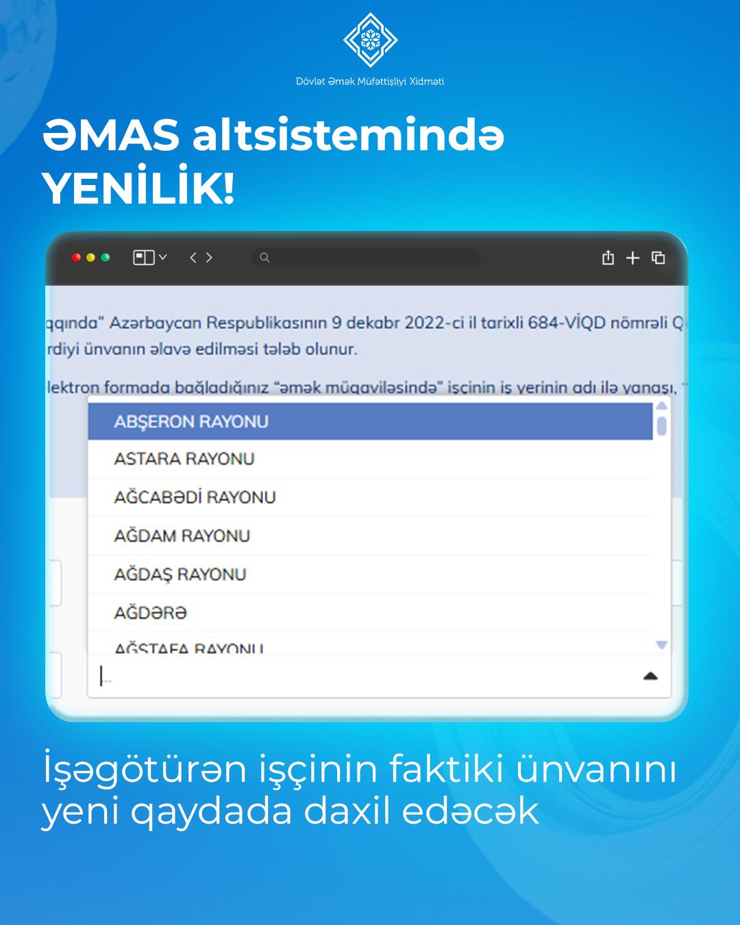 ƏMAS-da yeni funksionallıq: işçinin faktiki iş ünvanı yeni qaydada daxil ediləcək