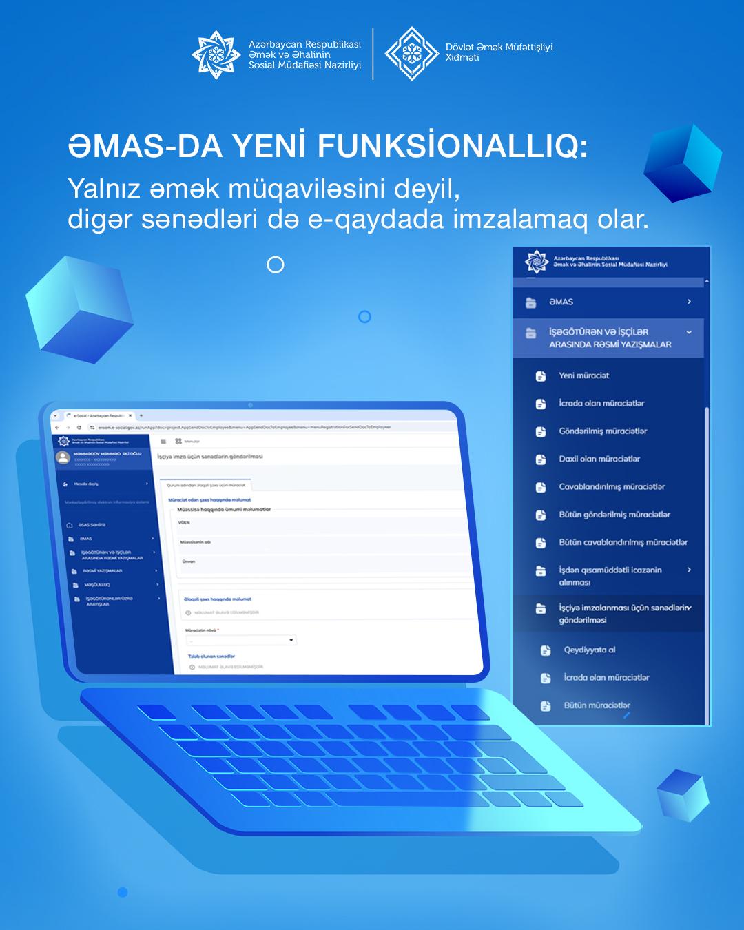 ƏMAS-da yeni funksionallıq: yalnız əmək müqaviləsini deyil, digər sənədləri də e-qaydada imzalamaq olar