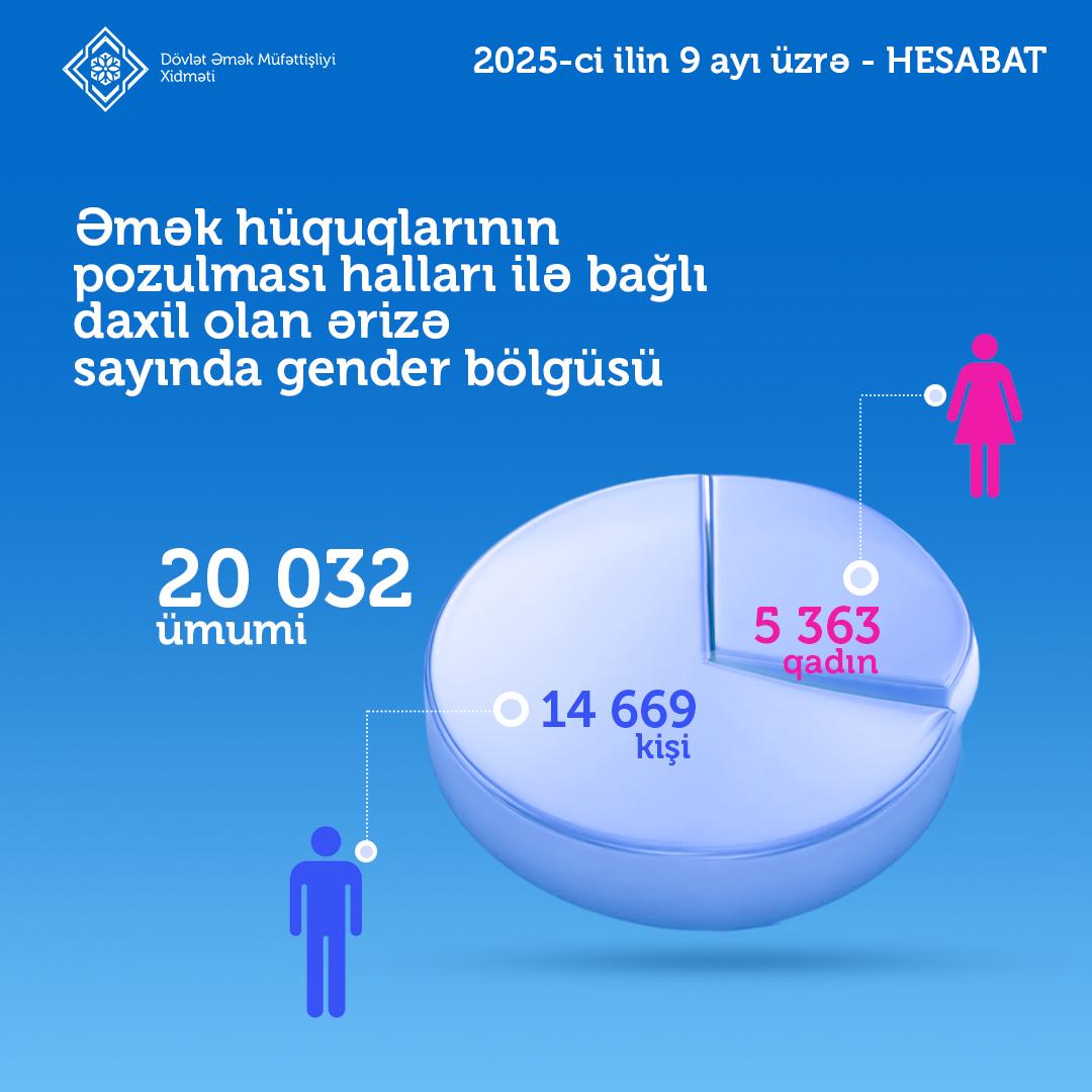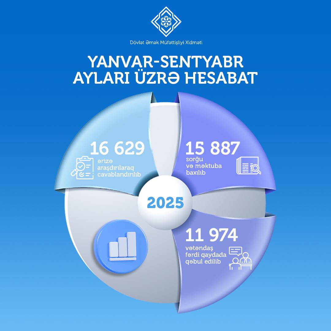 Dövlət Əmək Müfəttişliyi Xidməti tərəfindən 2025-ci ilin 9 ayı ərzində vətəndaşlardan 20 032 ərizə daxil olub