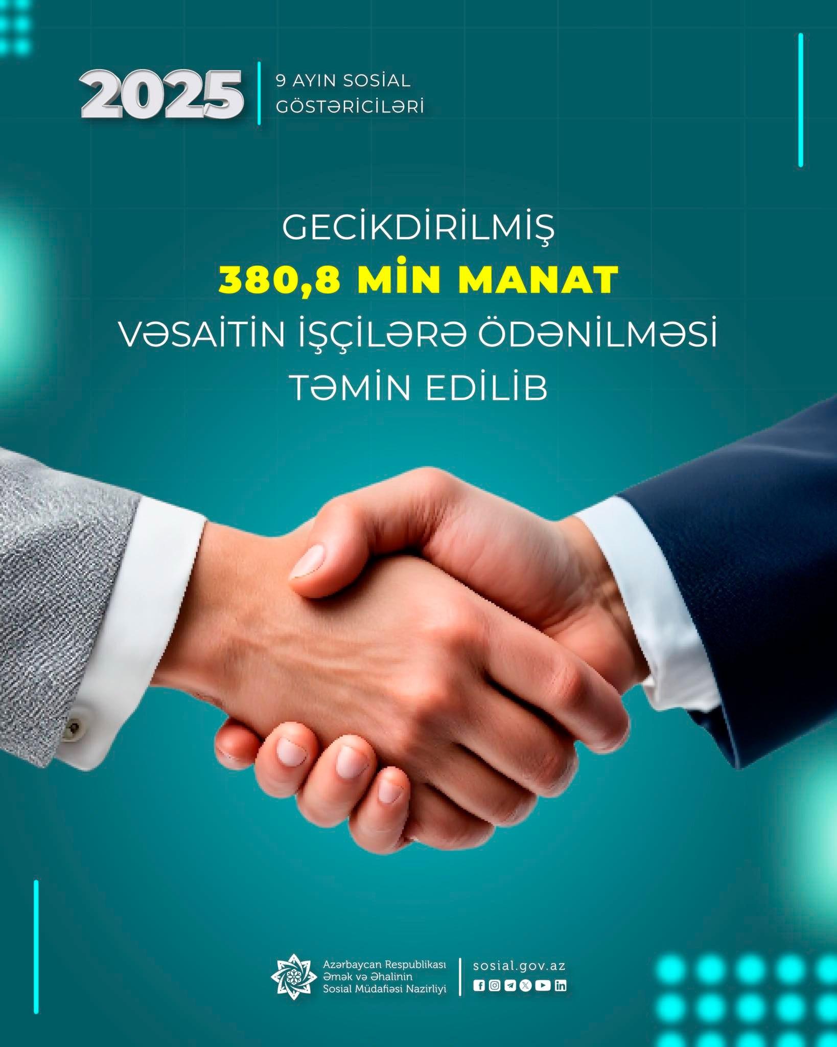Gecikdirilmiş 380,8 min manat vəsaitin işçilərə ödənilməsi təmin olunub