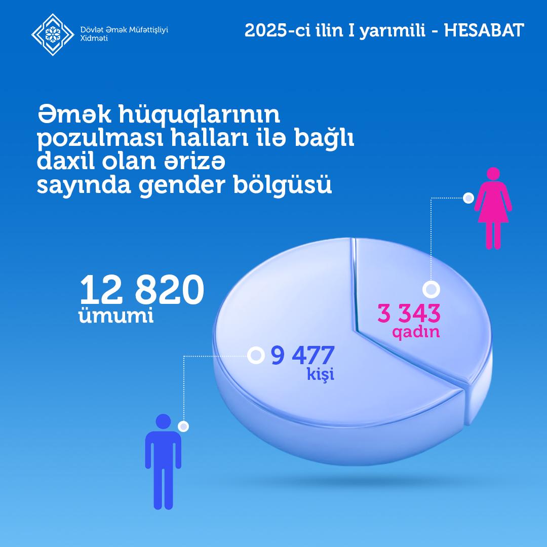 Dövlət Əmək Müfəttişliyi Xidməti tərəfindən 2025-ci ilin I yarımili ərzində vətəndaşlardan 12 820 ərizə daxil olub