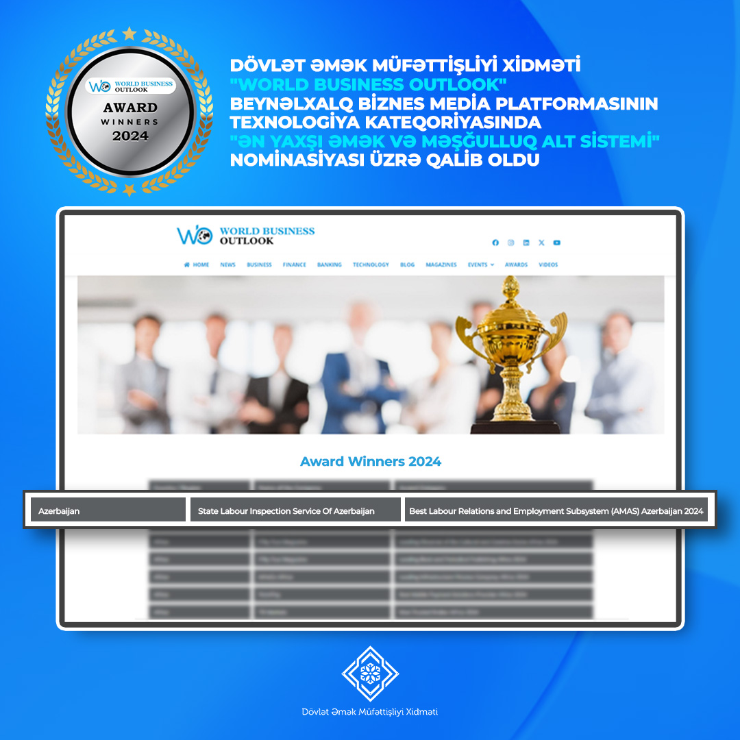 Dövlət Əmək Müfətişliyi Xidməti beynəlxalq mükafat aldı