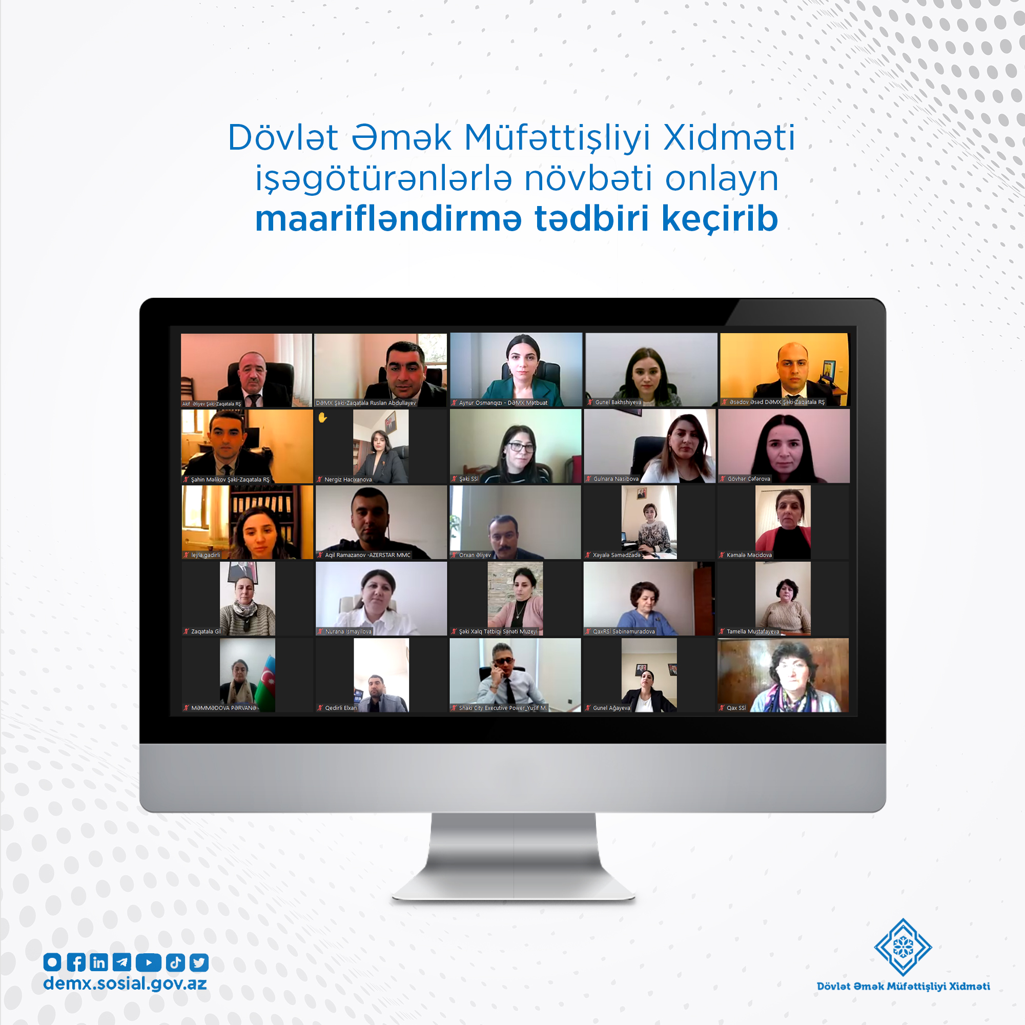 Dövlət Əmək Müfəttişliyi Xidməti işəgötürənlər üçün "Qadınların əmək hüquqları" mövzusunda növbəti maarifləndirici onlayn tədbir keçirib.