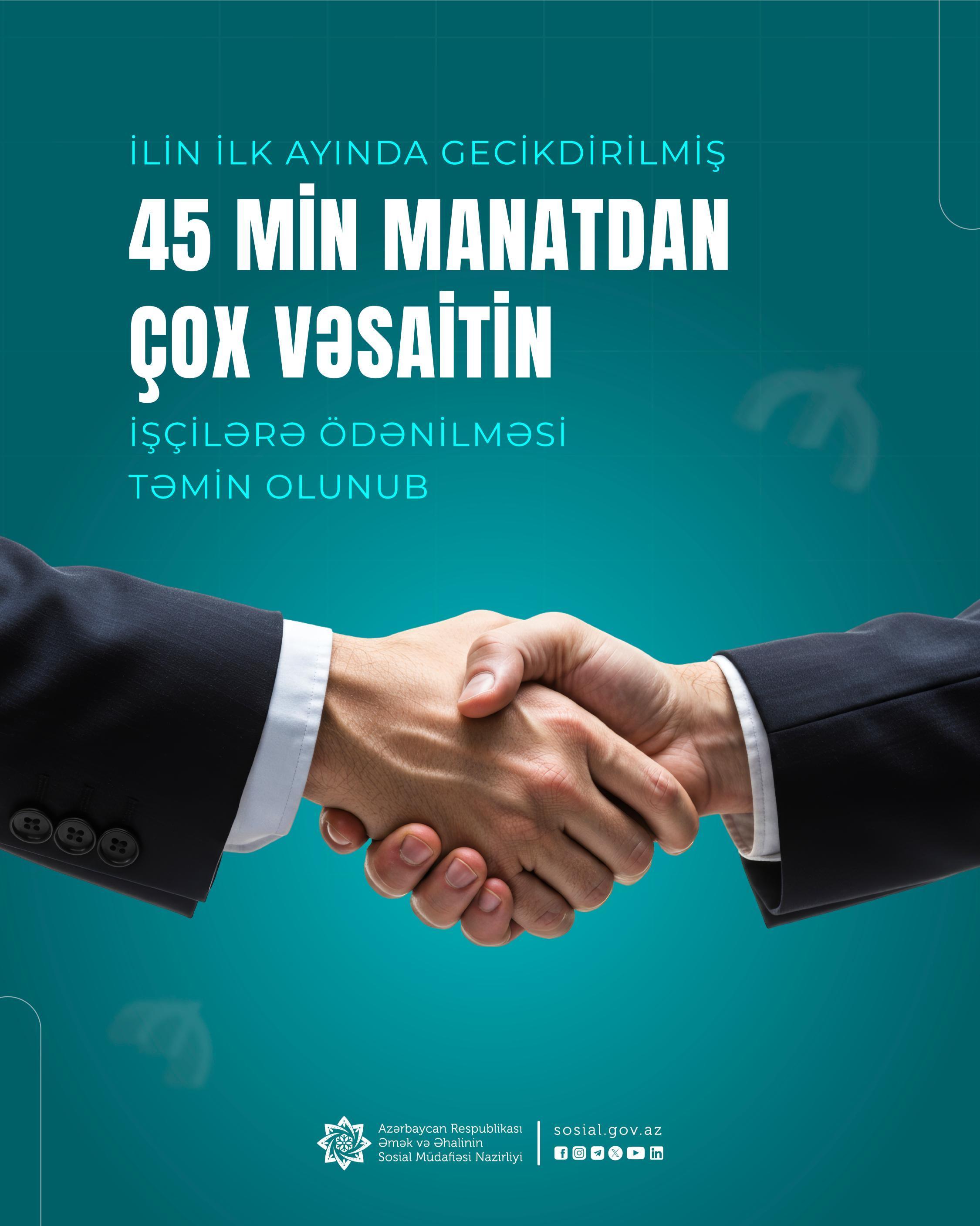 İlin ilk ayında gecikdirilmiş 45 min manatdan çox vəsaitin işçilərə ödənilməsi təmin olunub