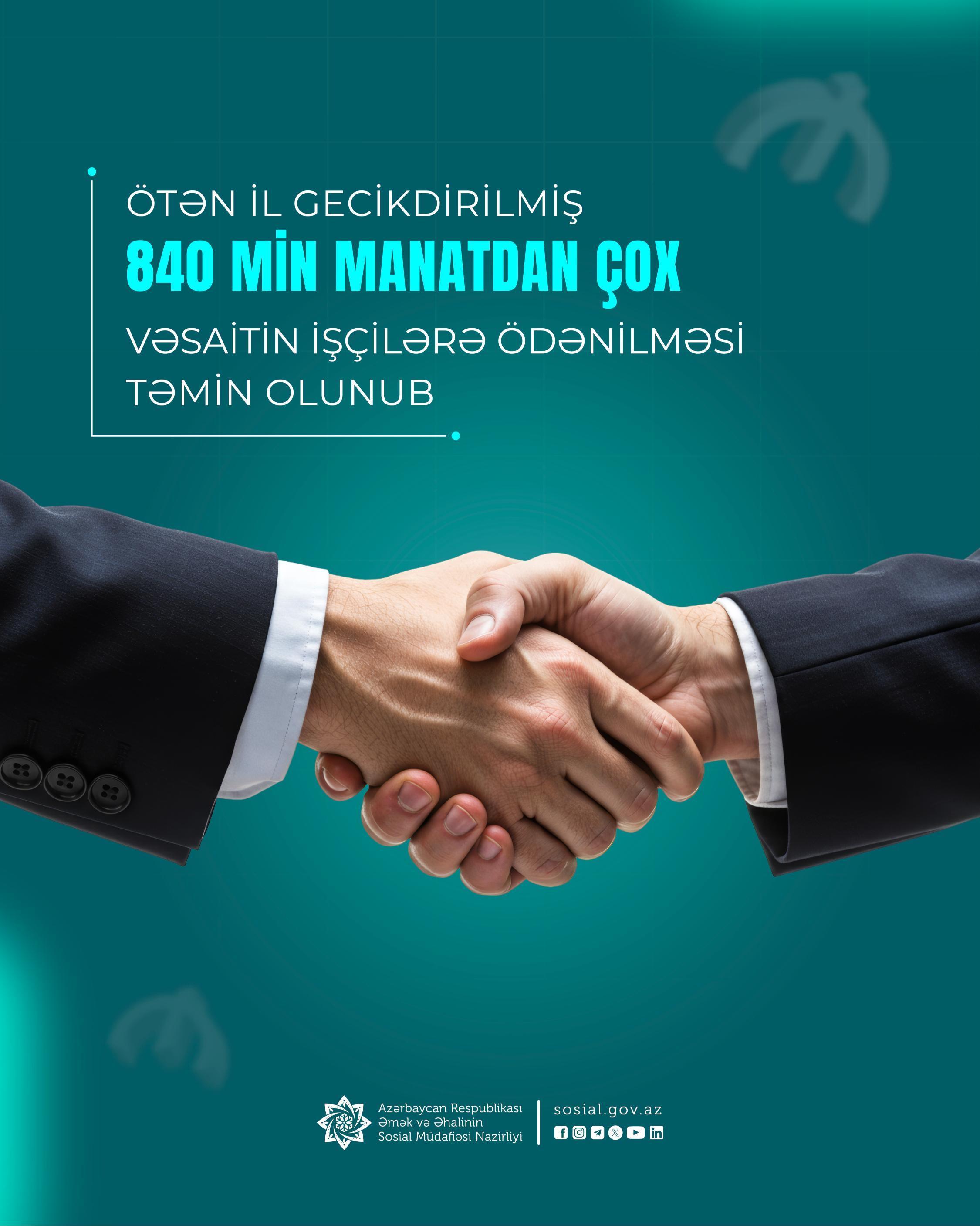 Ötən il gecikdirilmiş 840 min manatdan çox vəsaitin işçilərə ödənilməsi təmin olunub